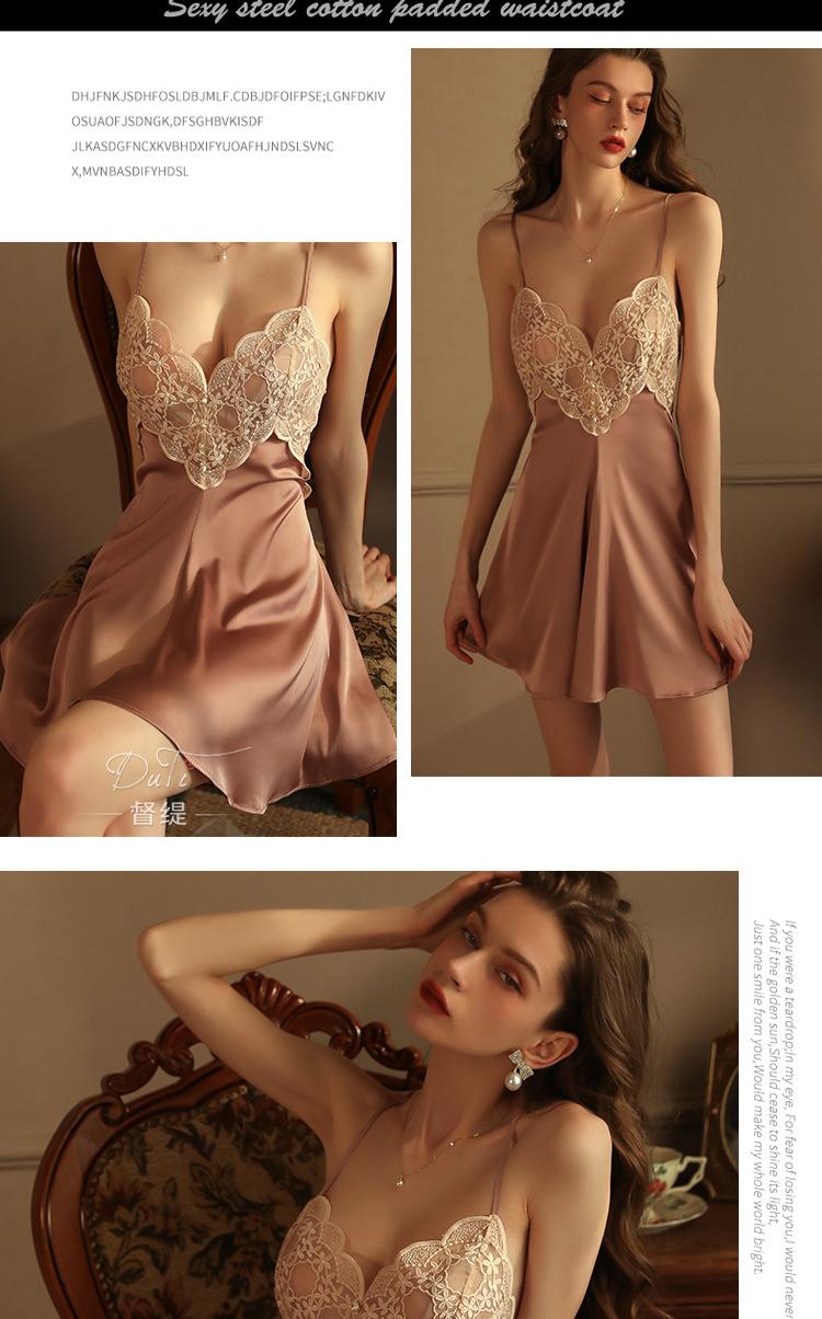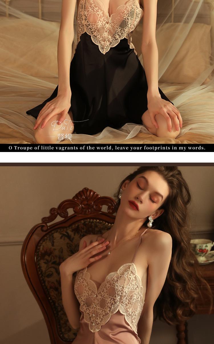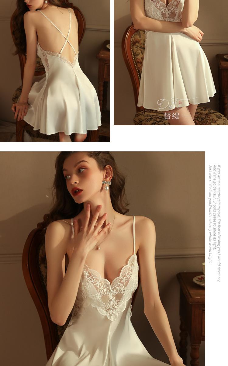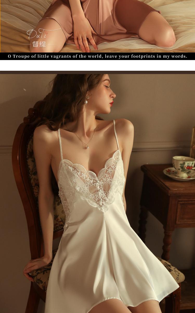 Compre Xianyi Camisola Sexy de Renda Seductora Sem Costas Camisola de Verão Feminina em Seda Gelo Cor Sólida Roupa de Dormir Conjunto Loungewear 455 no atacado no Joom.pro