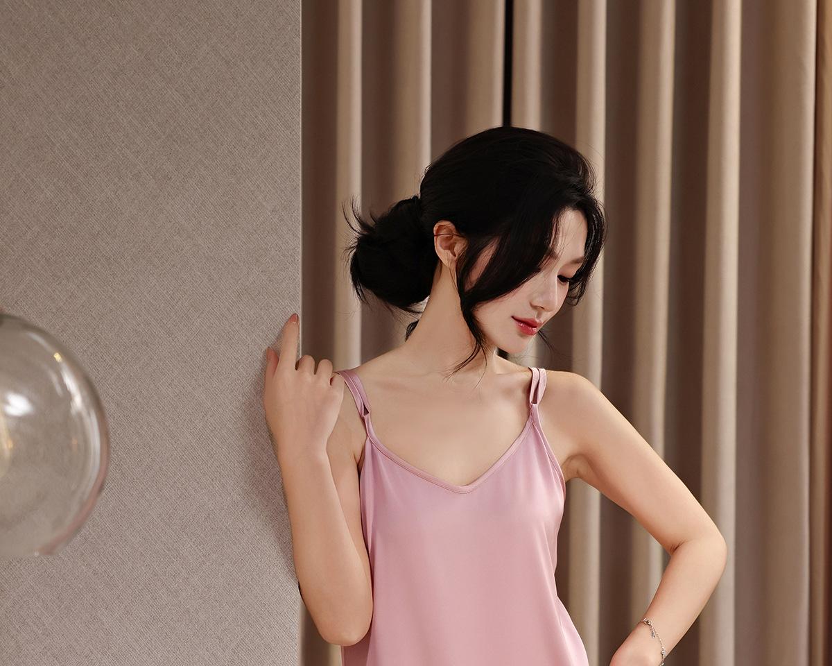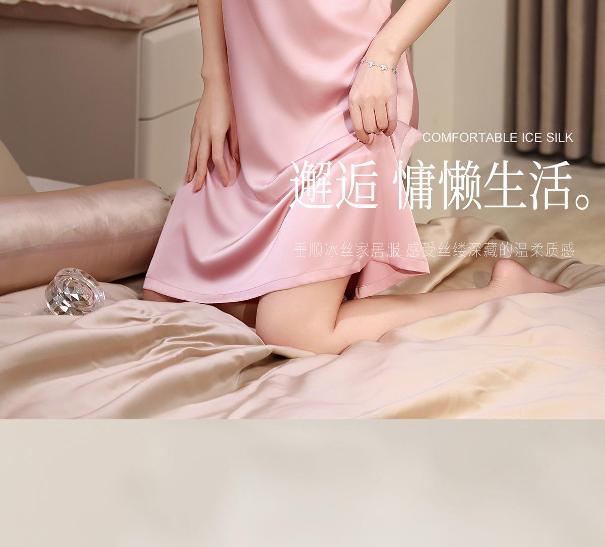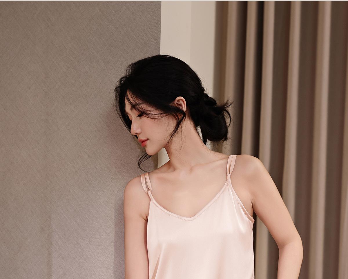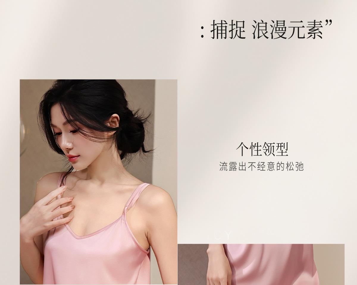 [Seda de Gelo] Vestido de Pijama Feminino Verão Fino Camisola de Alças Desejo Puro com Bojo Tamanho Grande Seda de Gelo Roupa de Casa
