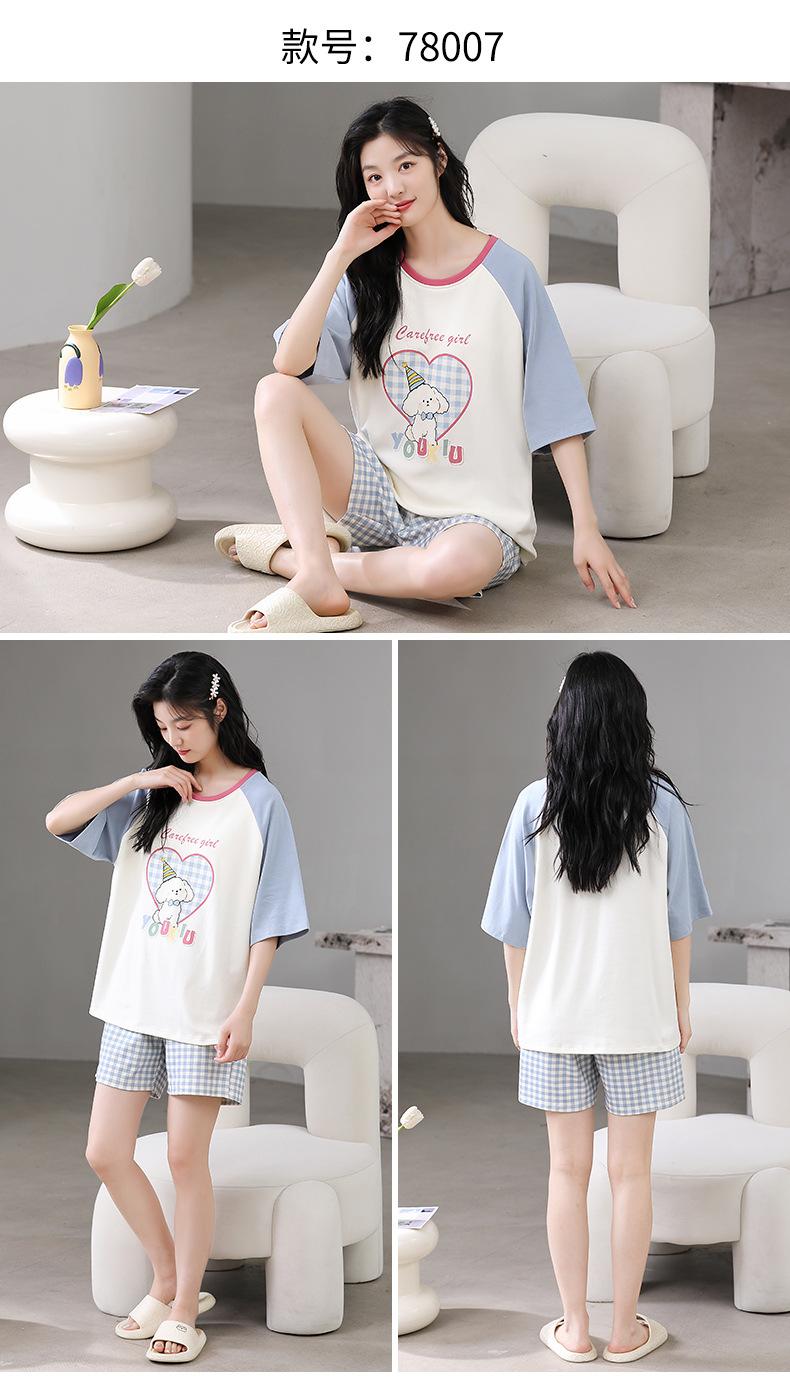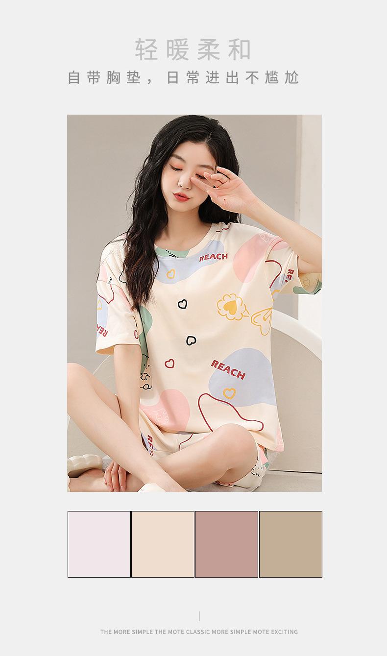 Compre Pijama com Bojo Feminina Verão Fina Manga Curta Shorts Algodão Puro Casual Solta Roupa de Casa Doce Conjunto de Duas Peças Gola Redonda no atacado no Joom.pro