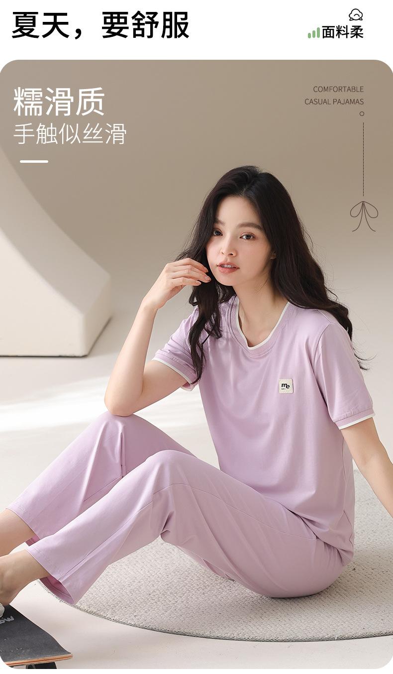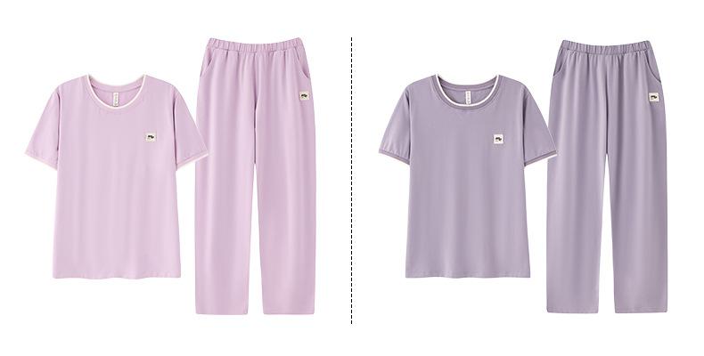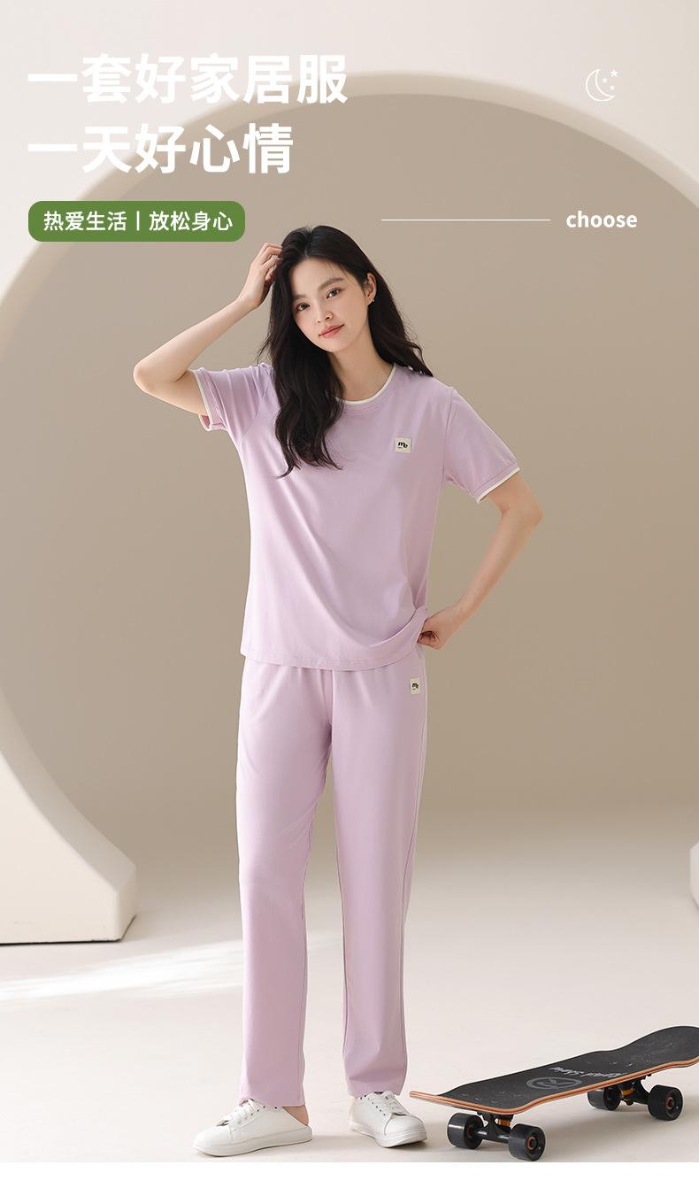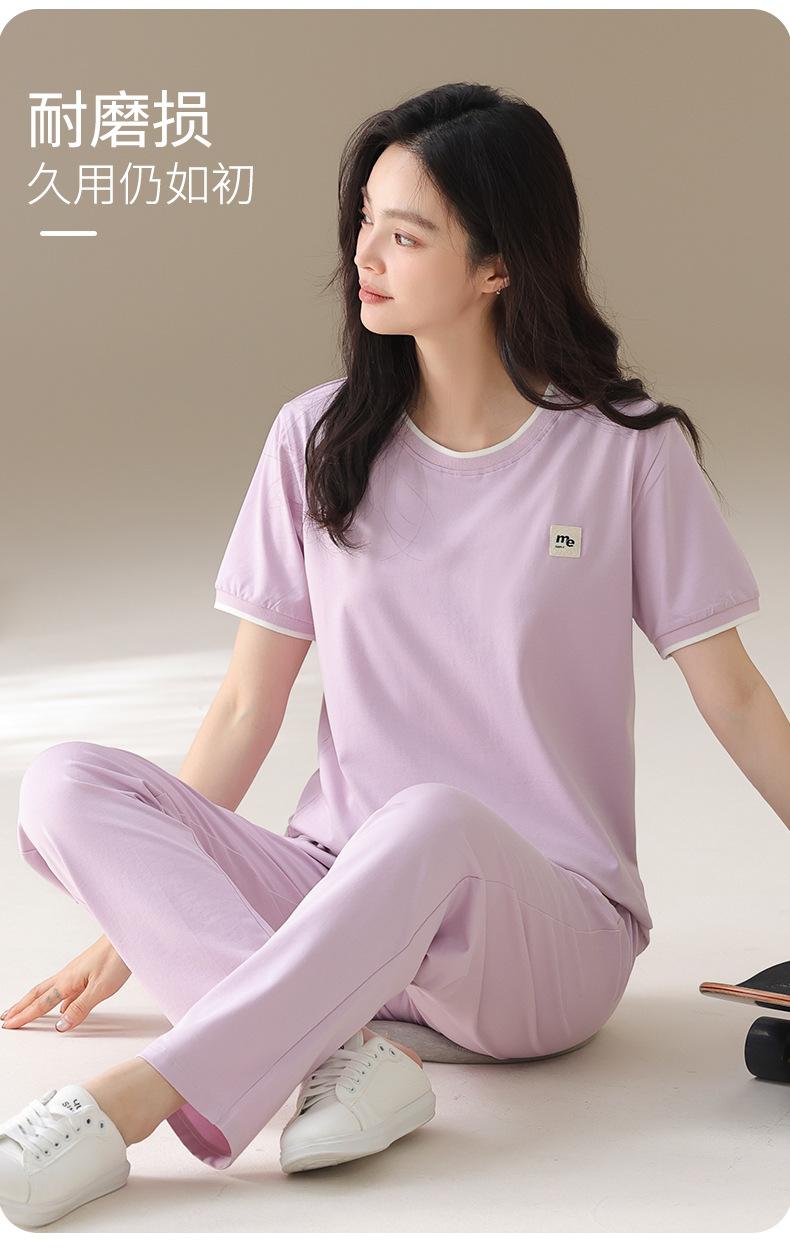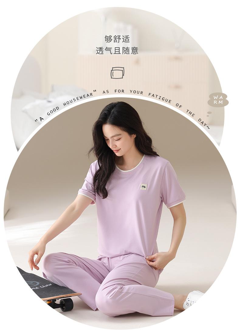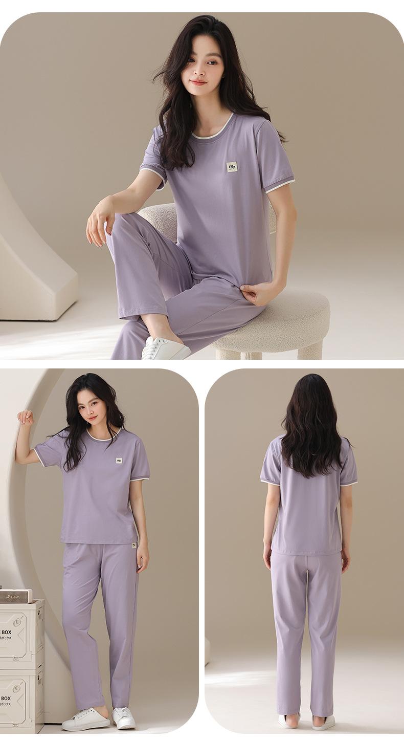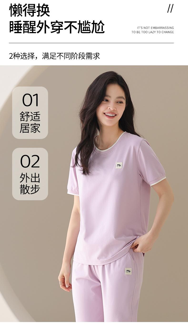 Compre Pijama de Verão Nova Pull-Up Algodão Manga Curta Calças Casual Feminino Gola Redonda Roupa de Casa Simples Cor Sólida Terno Antibacteriano no atacado no Joom.pro