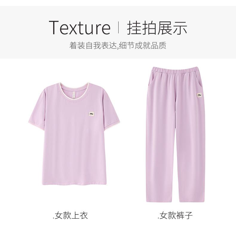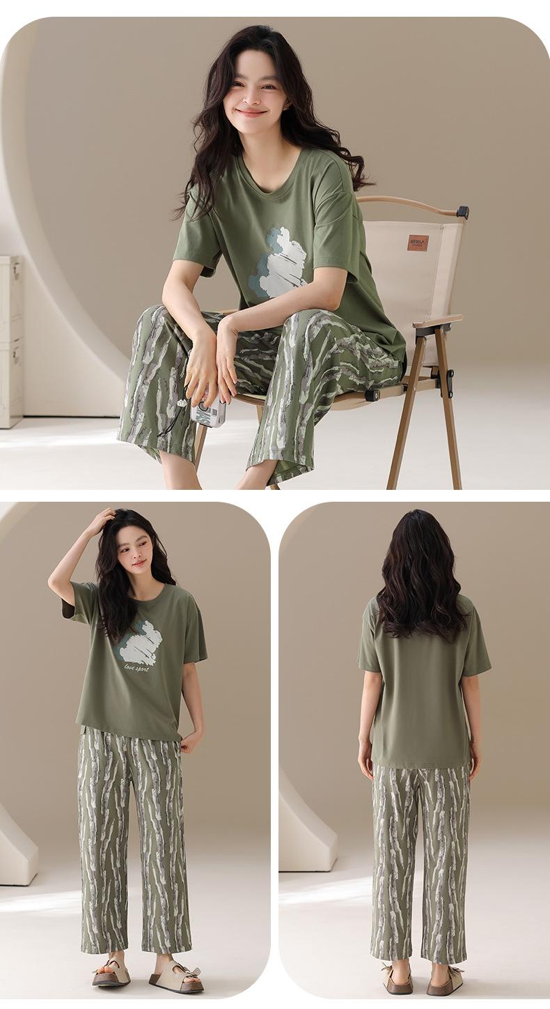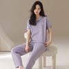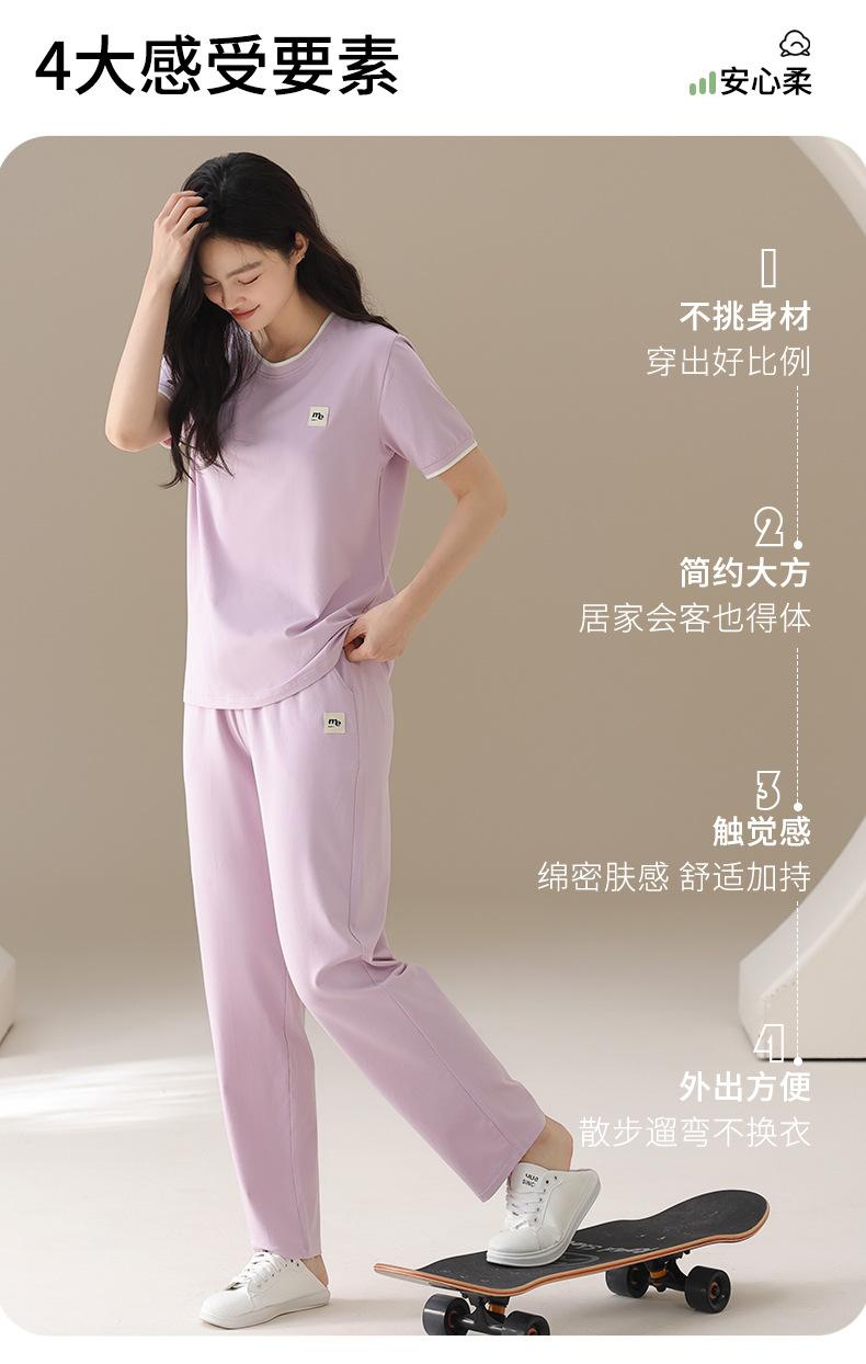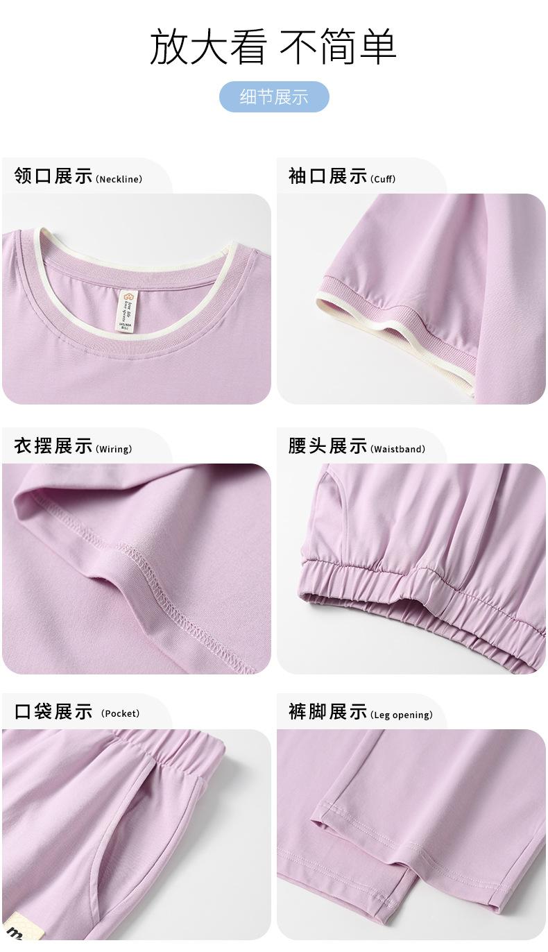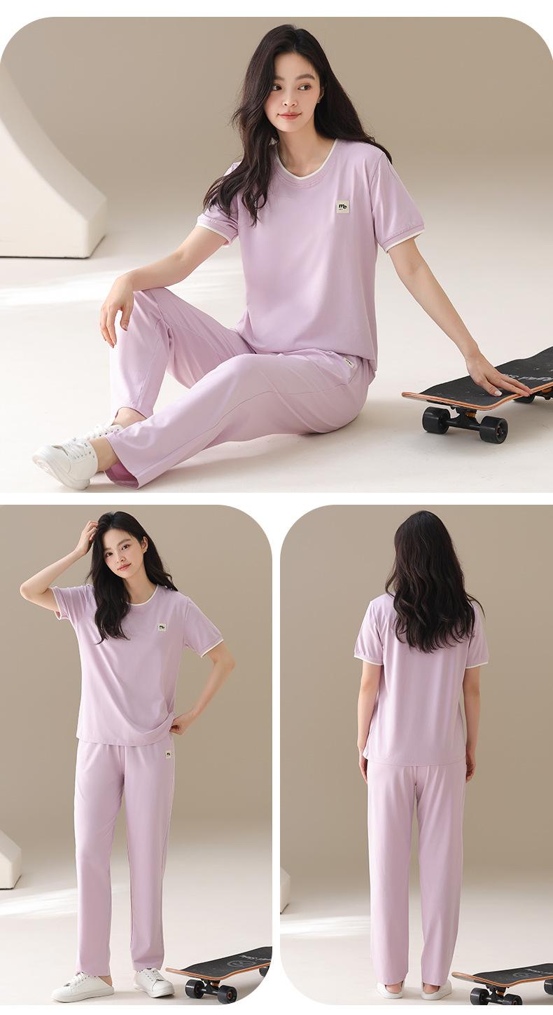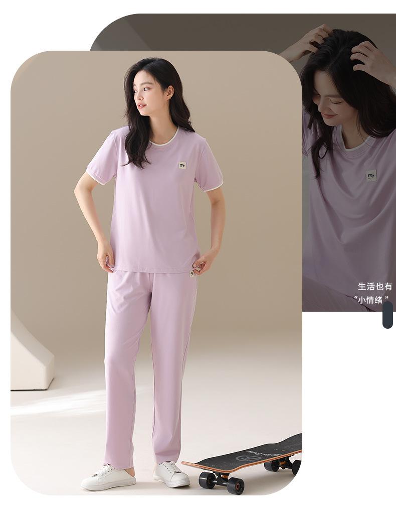 Compre Pijama de Verão Nova Pull-Up Algodão Manga Curta Calças Casual Feminino Gola Redonda Roupa de Casa Simples Cor Sólida Terno Antibacteriano no atacado no Joom.pro