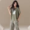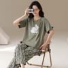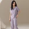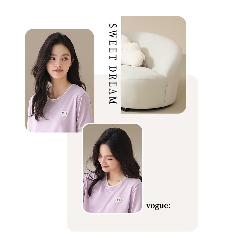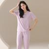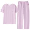 Pijama de Verão Nova Pull-Up Algodão Manga Curta Calças Casual Feminino Gola Redonda Roupa de Casa Simples Cor Sólida Terno Antibacteriano