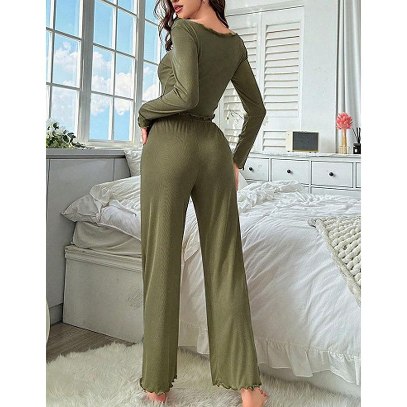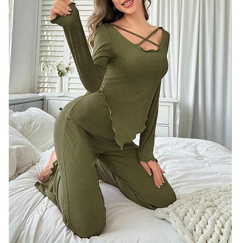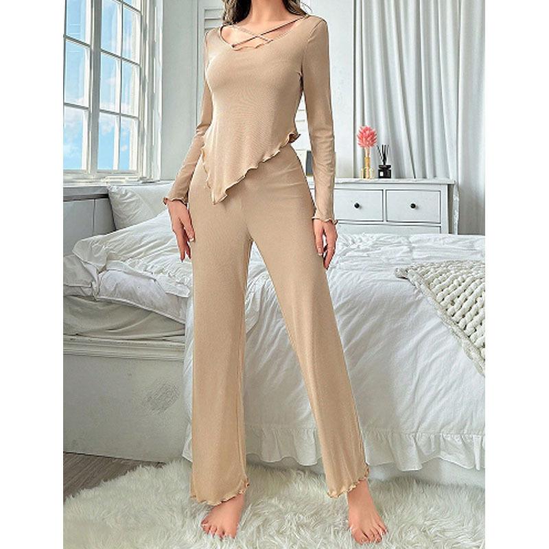 Outono Novo Pijama Sexy Terno Feminino Temperamento Simples Irregular Calças de Manga Longa Confortável Roupa de Casa Atacado