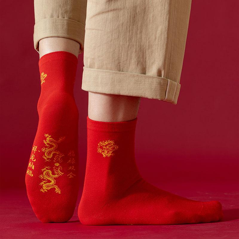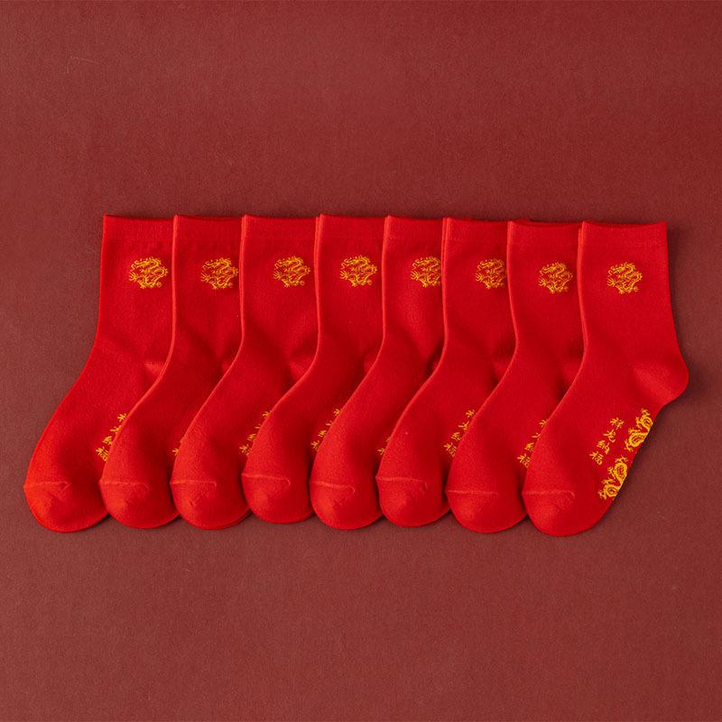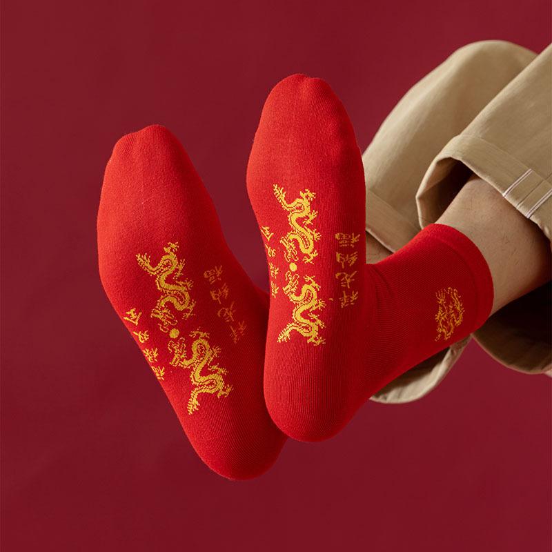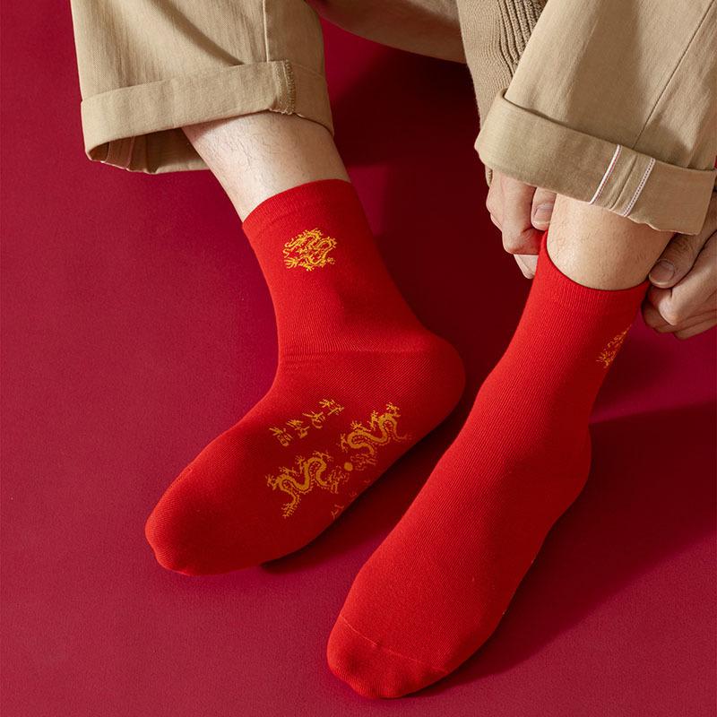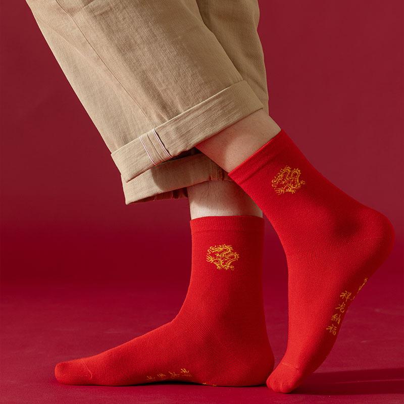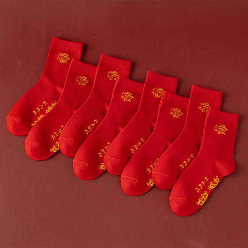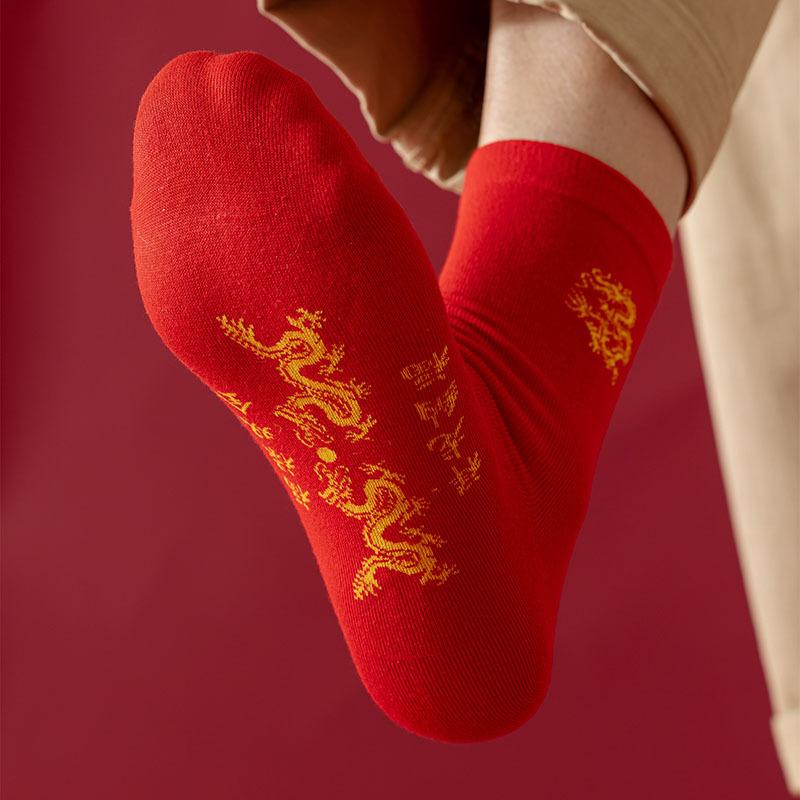 Meias de ano novo festivas de ano novo, meias da sorte, meias vermelhas grandes, meias femininas de inverno, meias de comprimento médio da panturrilha, meias de casamento de ano novo
