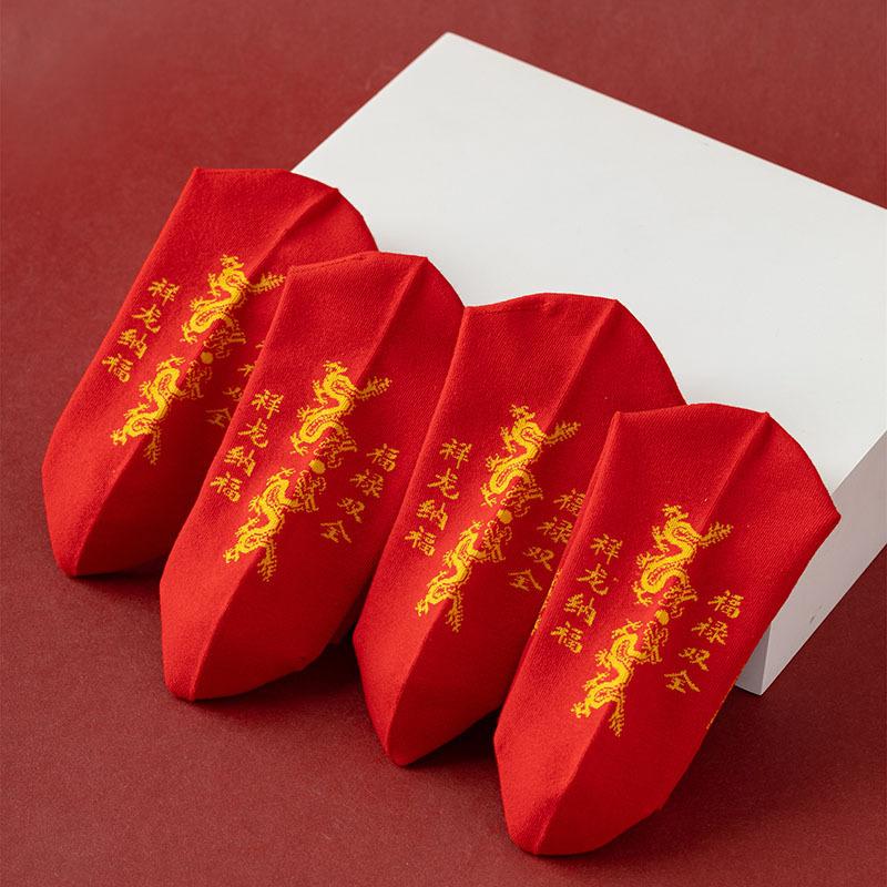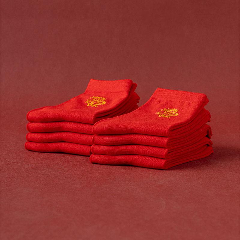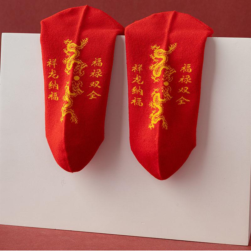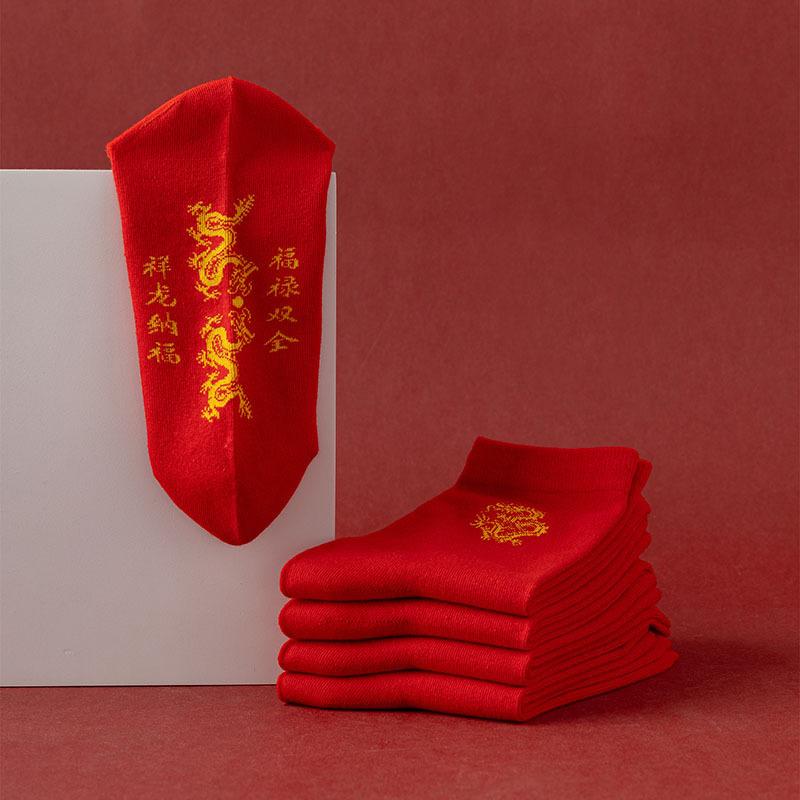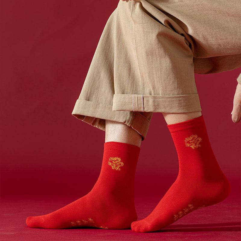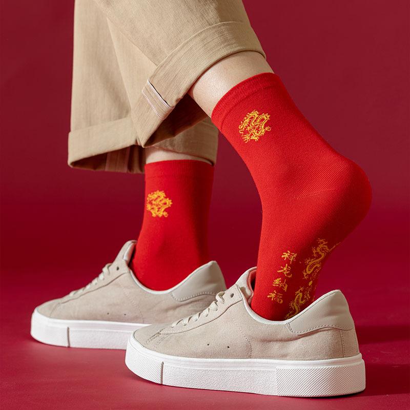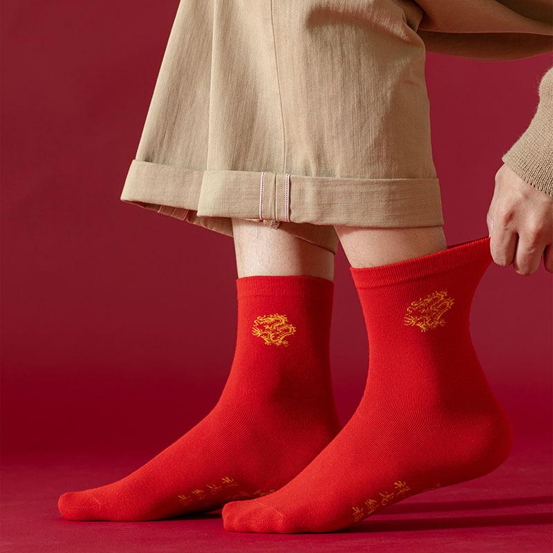 Meias de ano novo festivas de ano novo, meias da sorte, meias vermelhas grandes, meias femininas de inverno, meias de comprimento médio da panturrilha, meias de casamento de ano novo