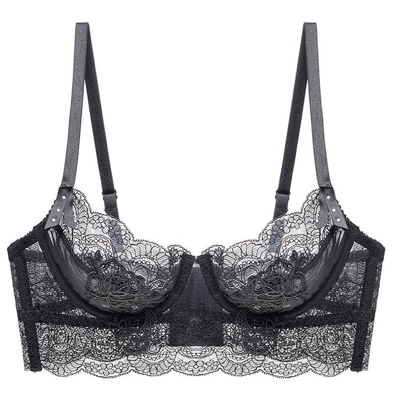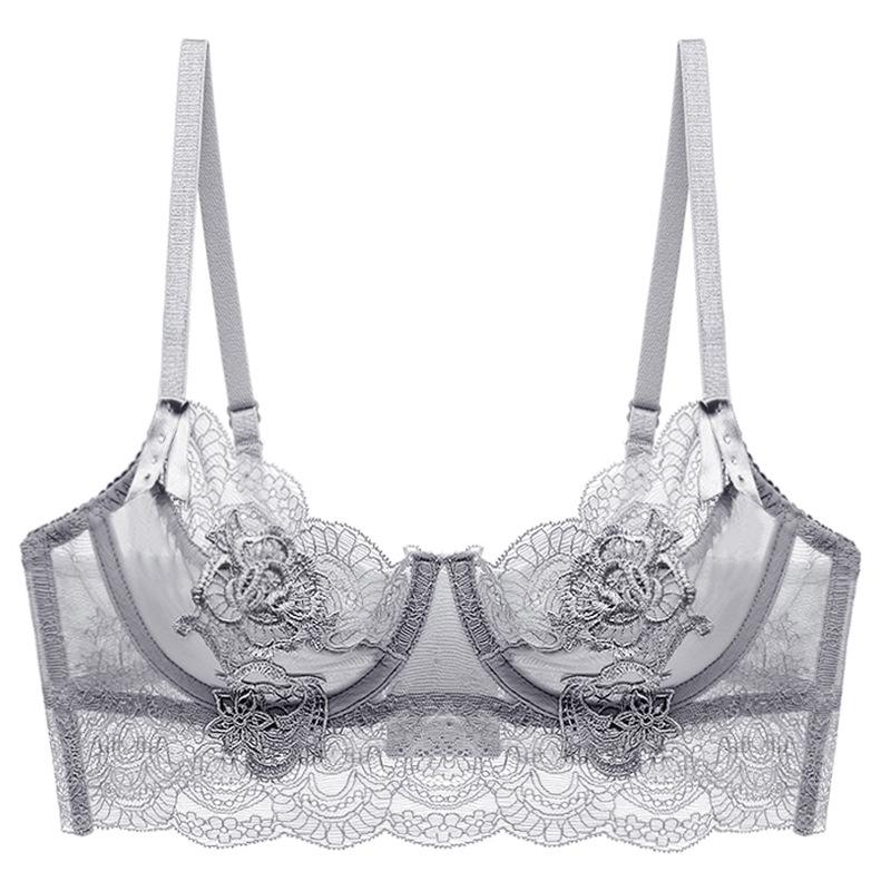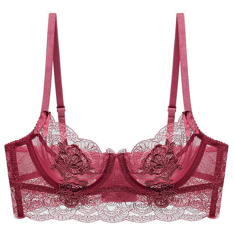 Sutiã de renda estilo francês feminino, ultrafino, com perspectiva, peito grande, pequeno, anti-flacidez, tamanho grande, roupa íntima sexy