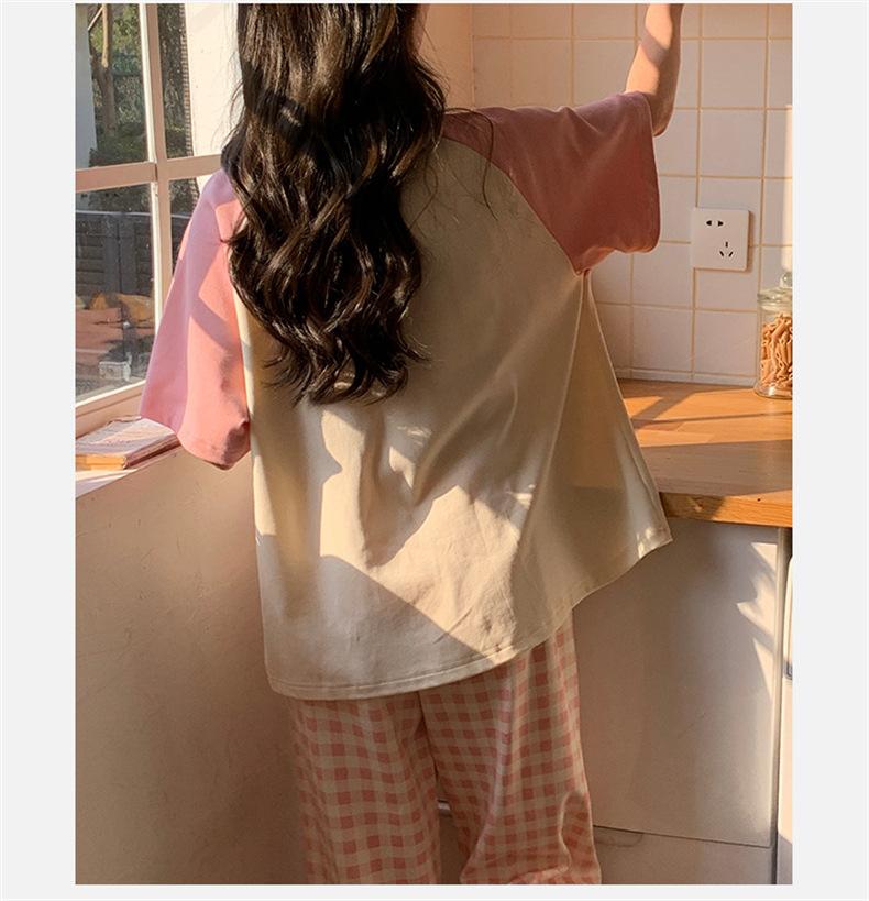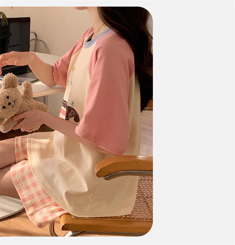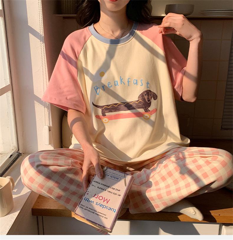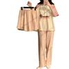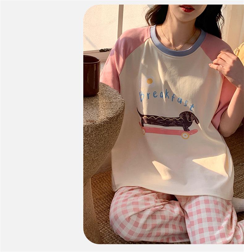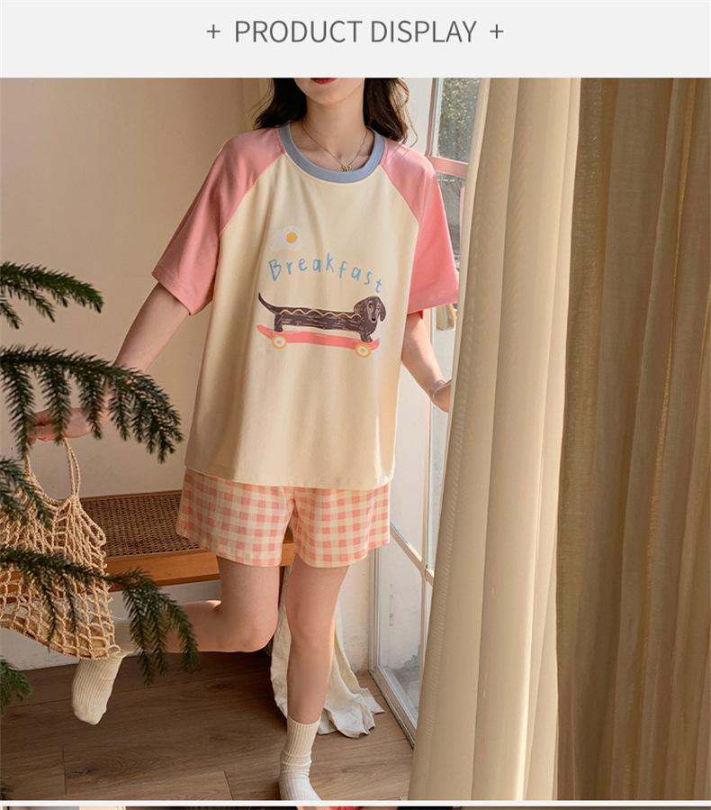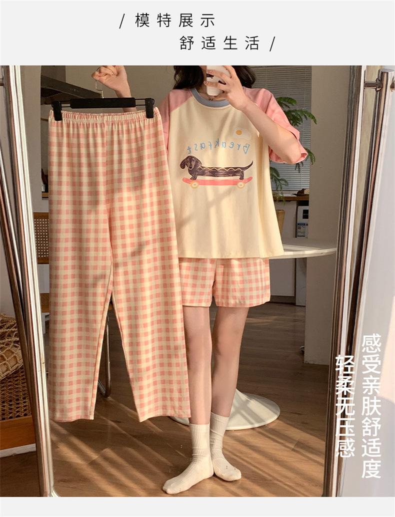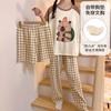 Pijama feminino de três peças, manga curta, calça com bojo, desenho animado, roupa de casa feminina, roupa casual, shorts de verão