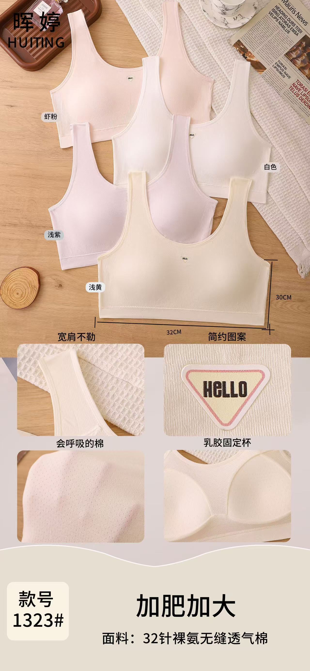 [Preço único] Hui Ting 1323# Colete de látex para meninas com bojo fixo, confortável, 32 pinos, amônia nua, algodão sem costura