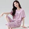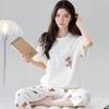 Pijama Nova para Mulheres Verão Algodão Puro Manga Curta Calças Pulôver Gola Redonda Doce e Fofa Conjunto de Roupa de Casa