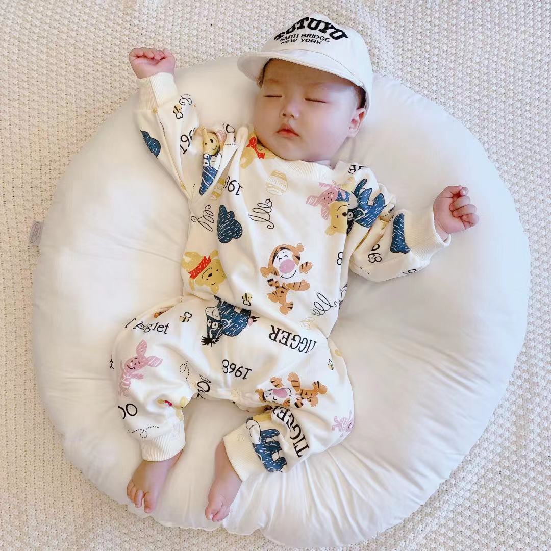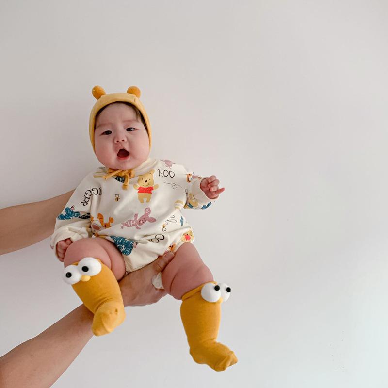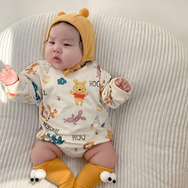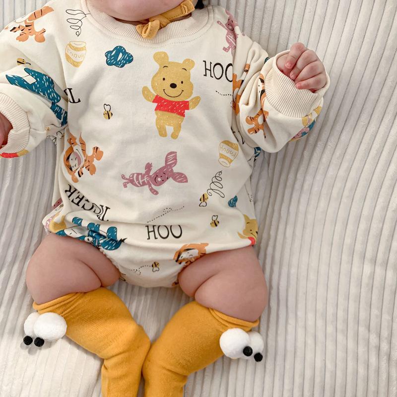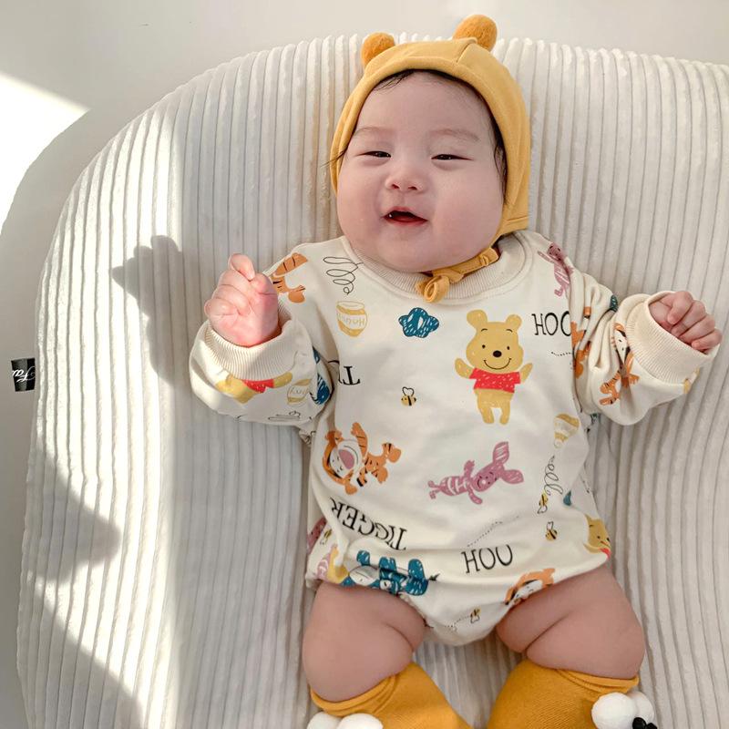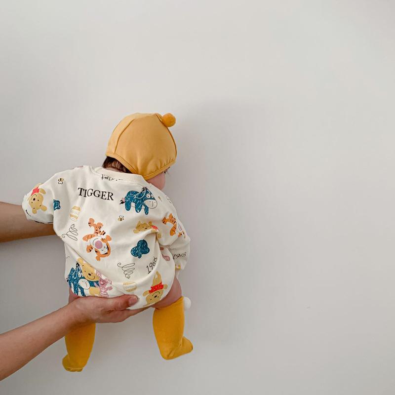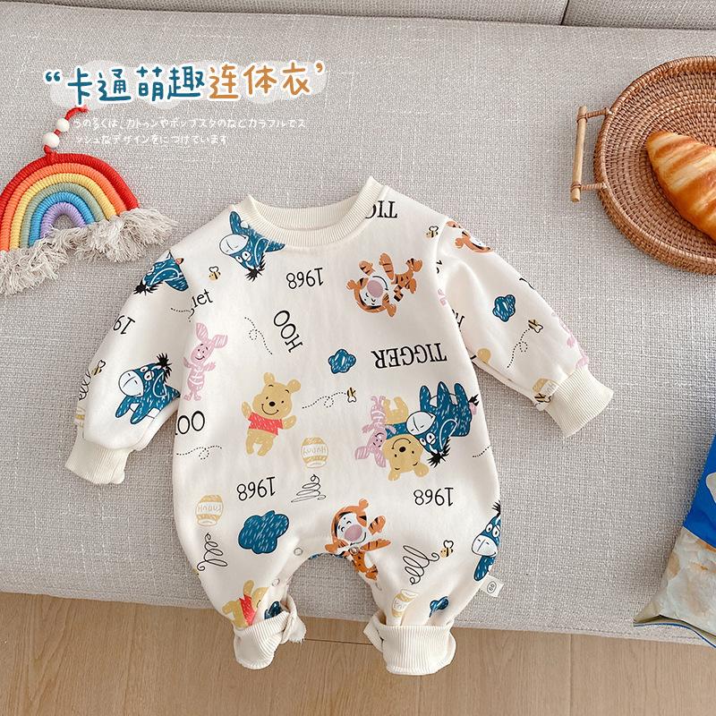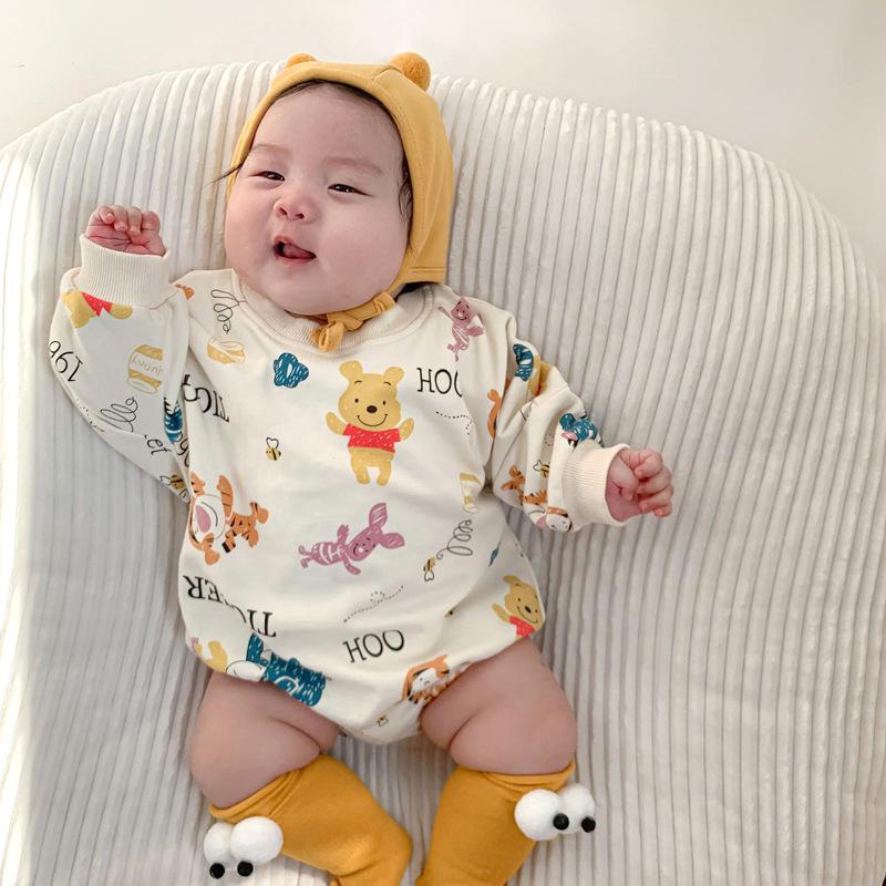 Novo macacão de manga comprida masculino e feminino para bebê, bolsa de bebê, macacão de pum, estampa de desenho animado fofo, estilo coreano, macacão longo, atacado