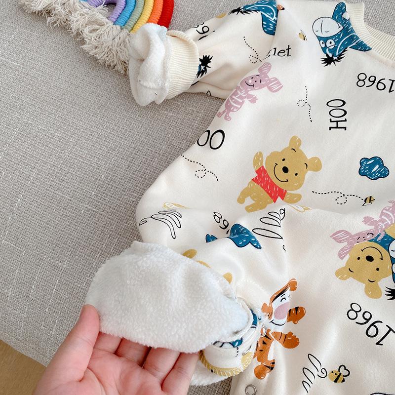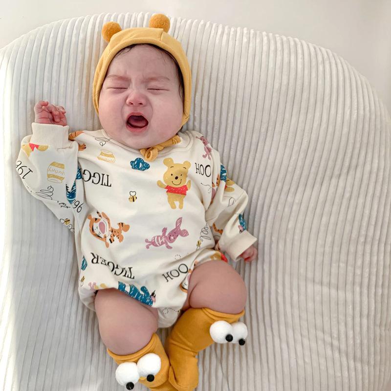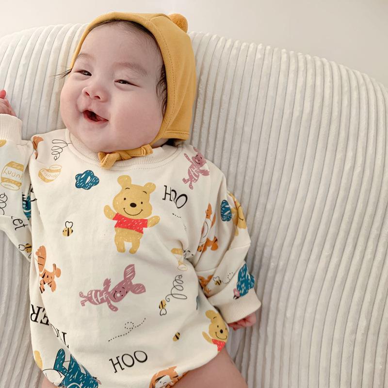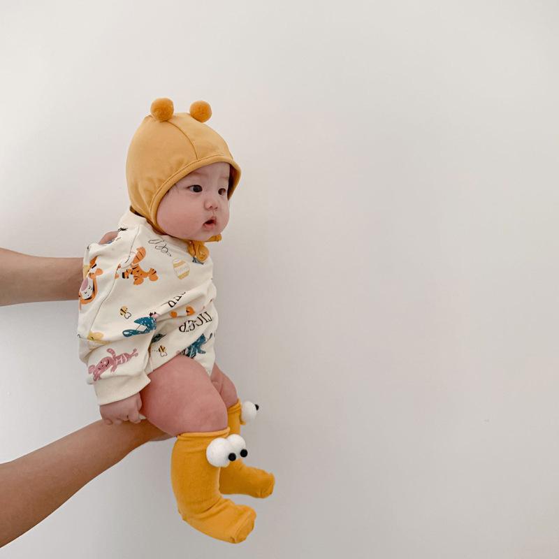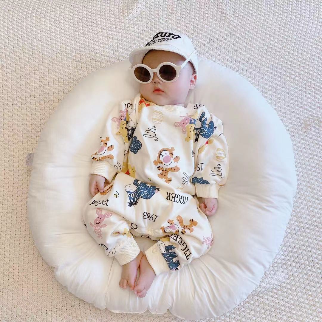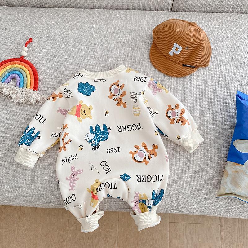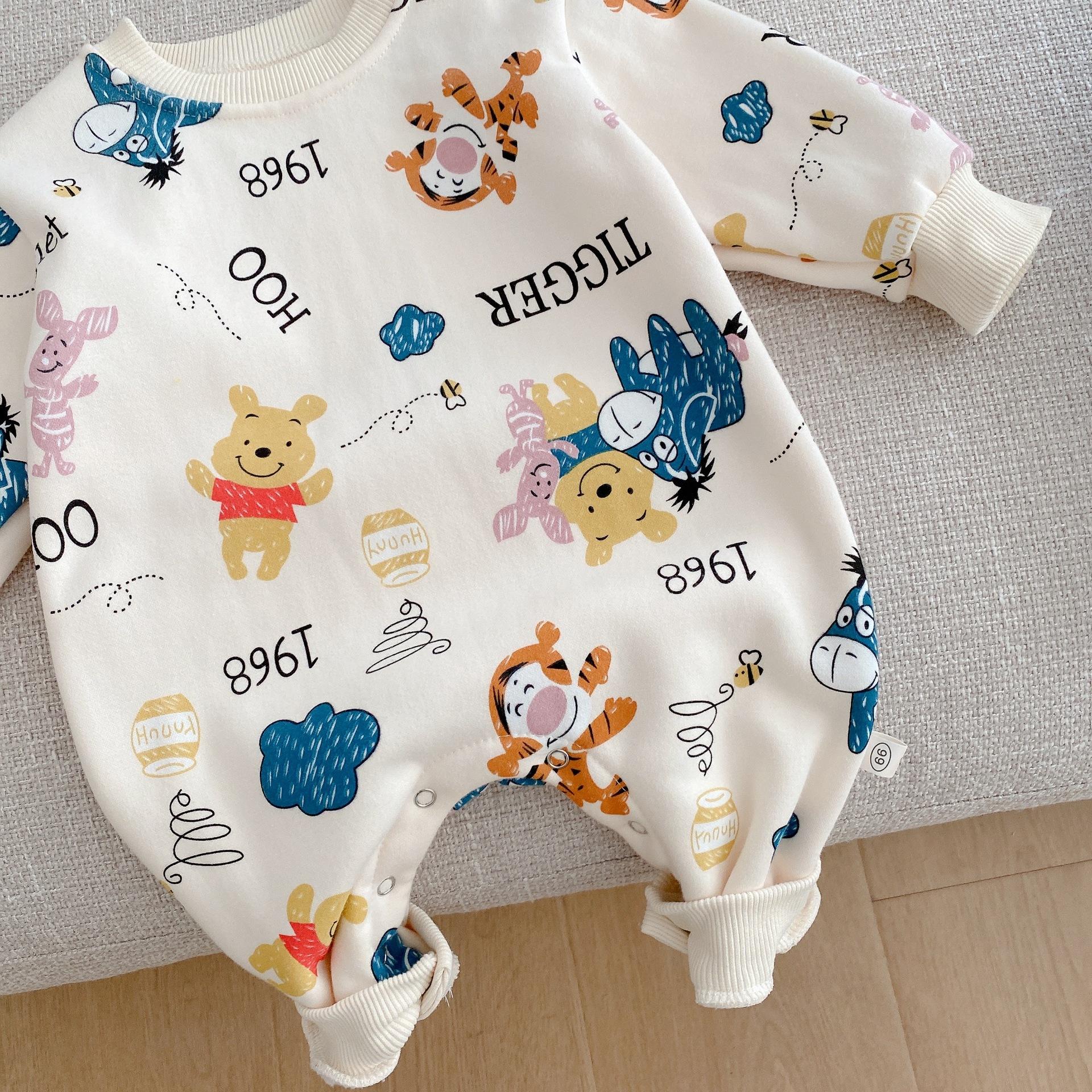 Novo macacão de manga comprida masculino e feminino para bebê, bolsa de bebê, macacão de pum, estampa de desenho animado fofo, estilo coreano, macacão longo, atacado