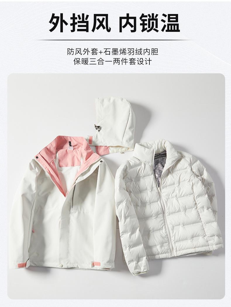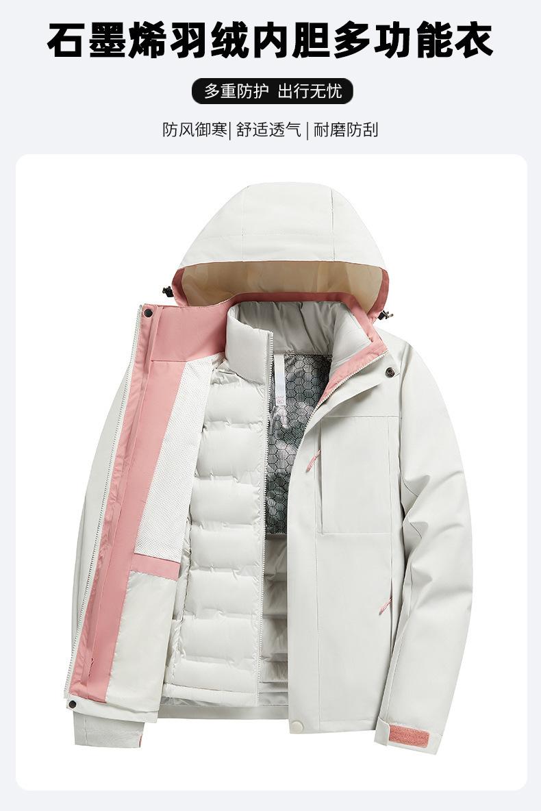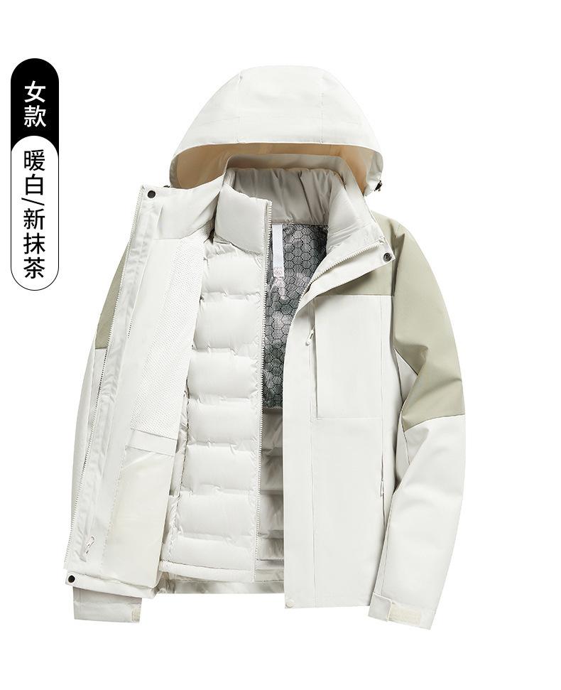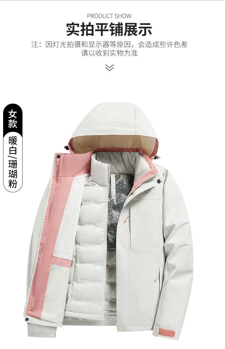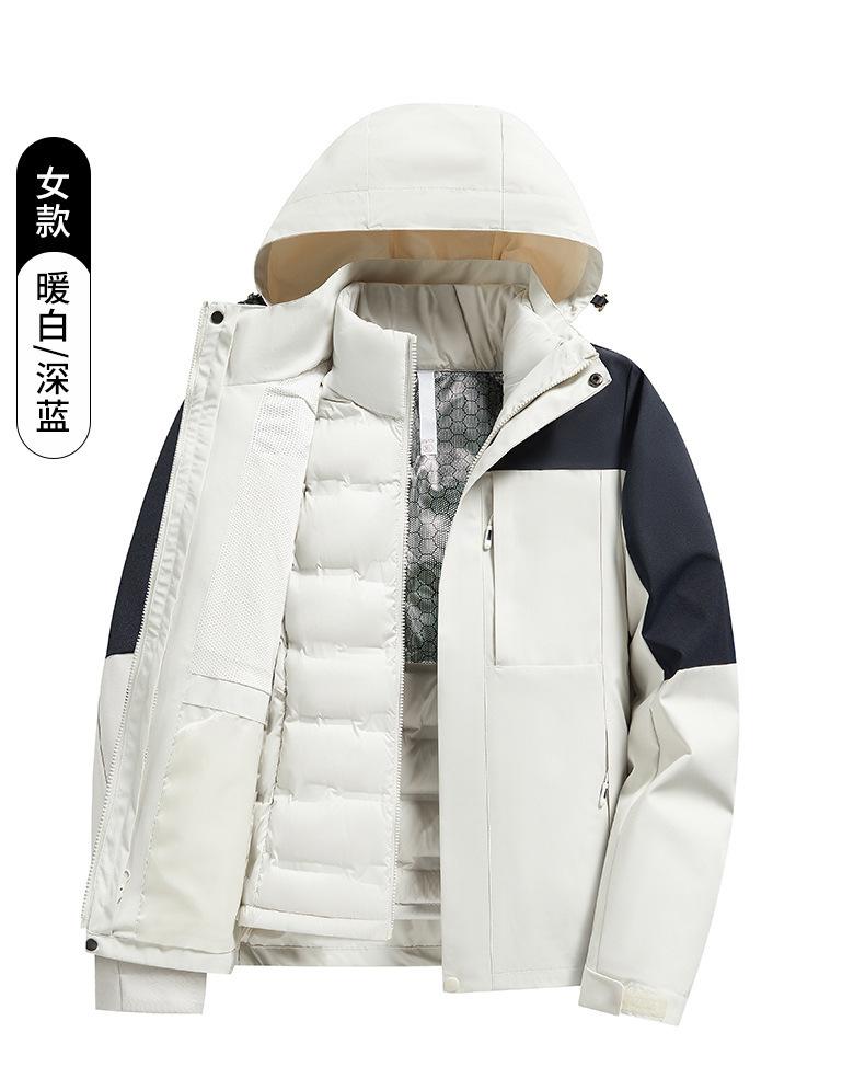 Jaqueta de plumas para atividades ao ar livre, três em um, destacável, à prova de vento, à prova d'água, para viagem, montanhismo, para homens e mulheres, jaqueta para atividades ao ar livre