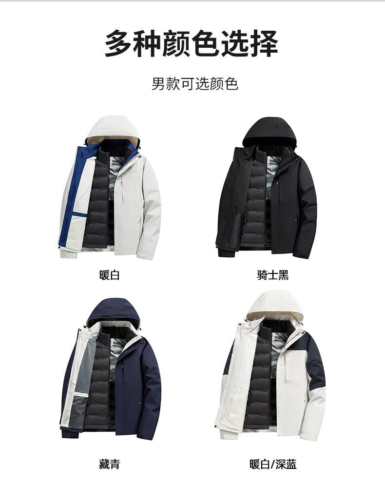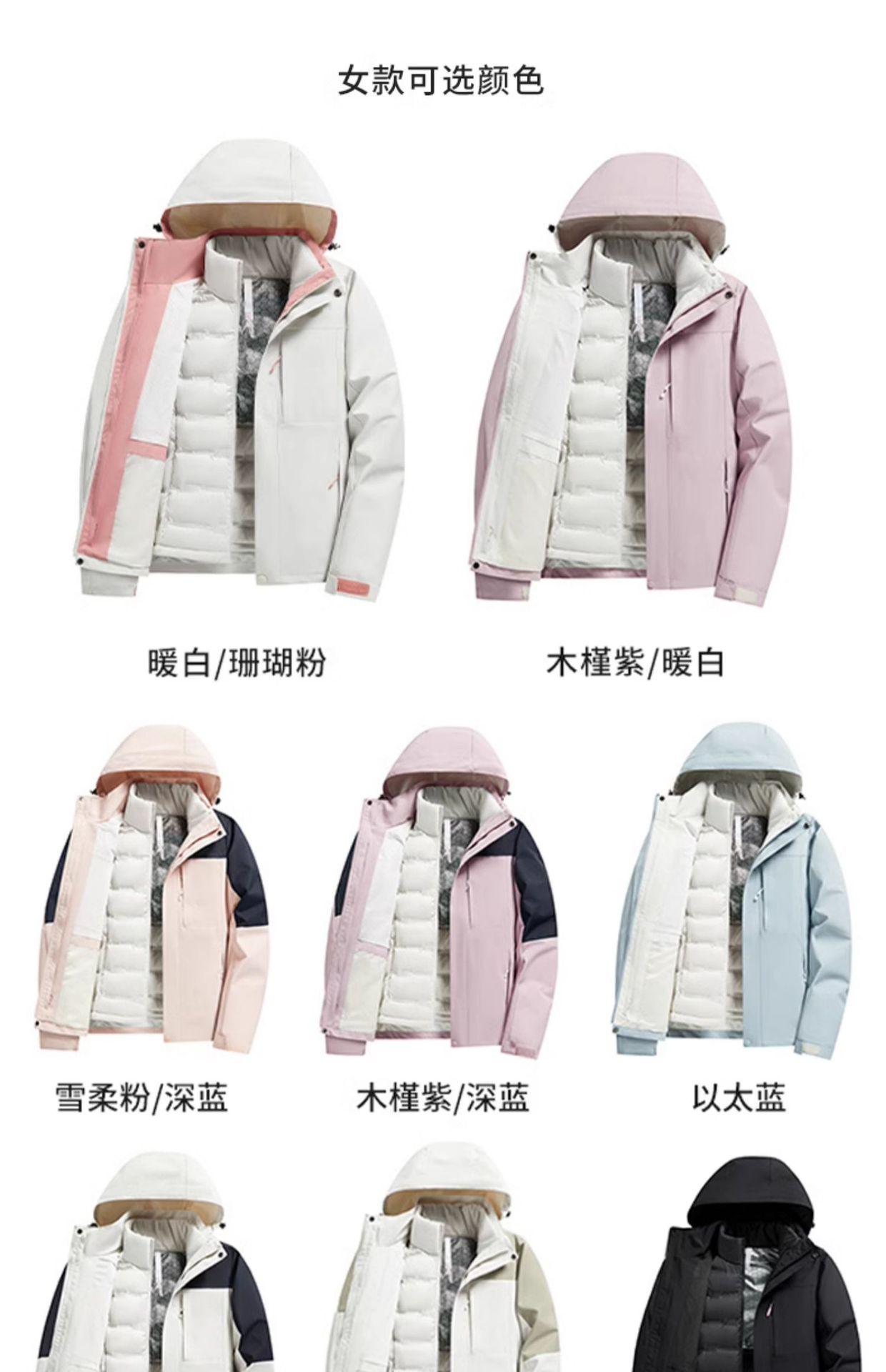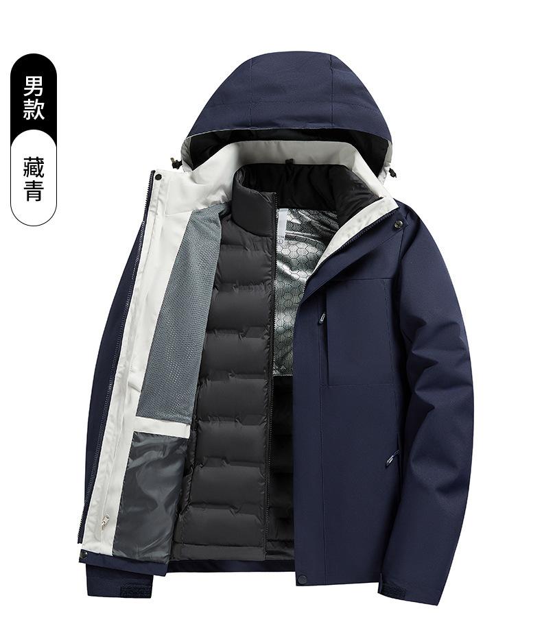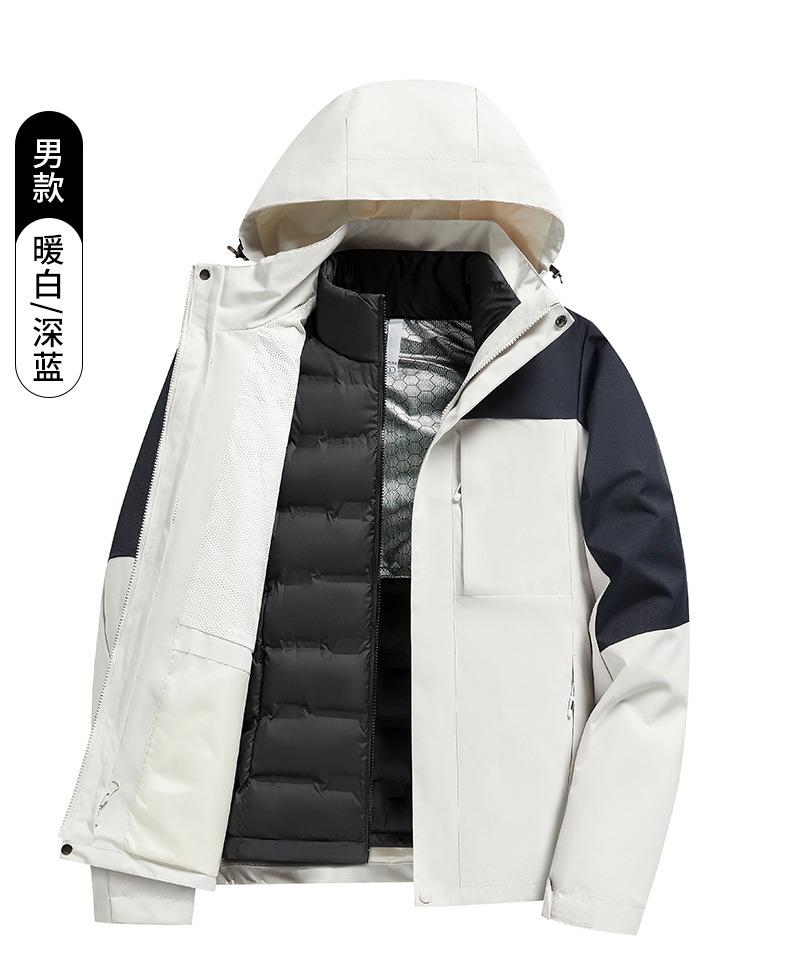Jaqueta de plumas para atividades ao ar livre, três em um, destacável, à prova de vento, à prova d'água, para viagem, montanhismo, para homens e mulheres, jaqueta para atividades ao ar livre