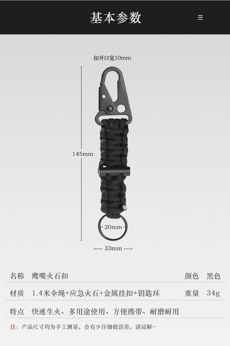 Chaveiro ao ar livre Eagle boca fivela Flint fivela suspensa selvagem rápido pendurado guarda-chuva corda tecida à mão mosquetão chaveiro
