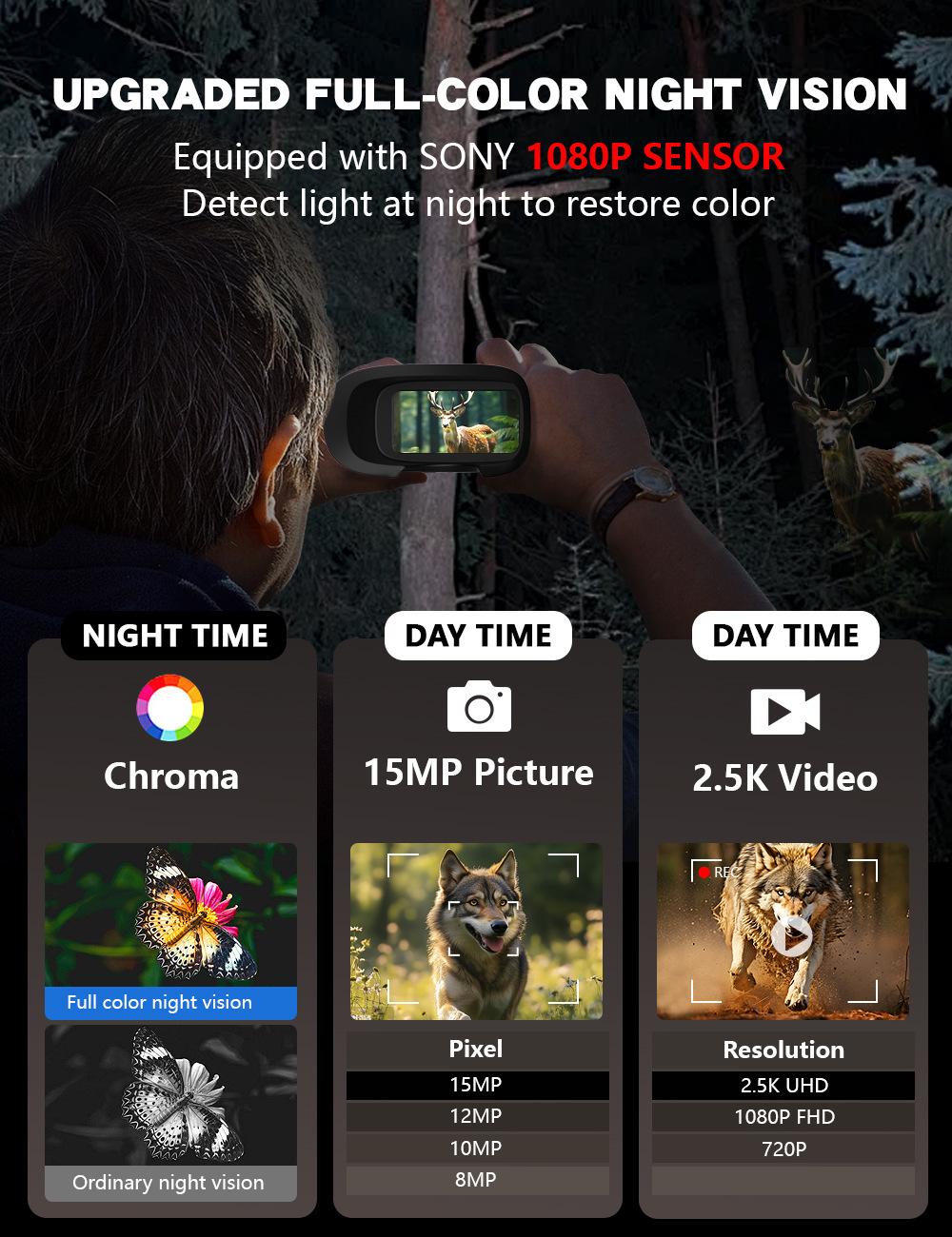 Câmera explosiva de alta definição para exterior, vídeo portátil, visão noturna infravermelha, telescópio digital transfronteiriço