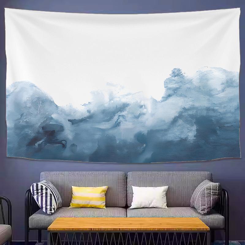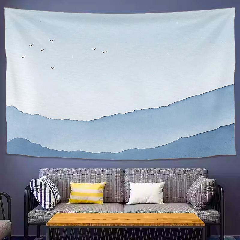 Pano de fundo de cabeceira azul escuro simples, tecido para pendurar, decoração de desenho animado para quarto e dormitório, sensação avançada