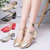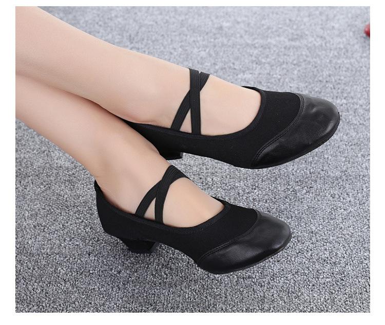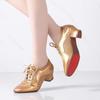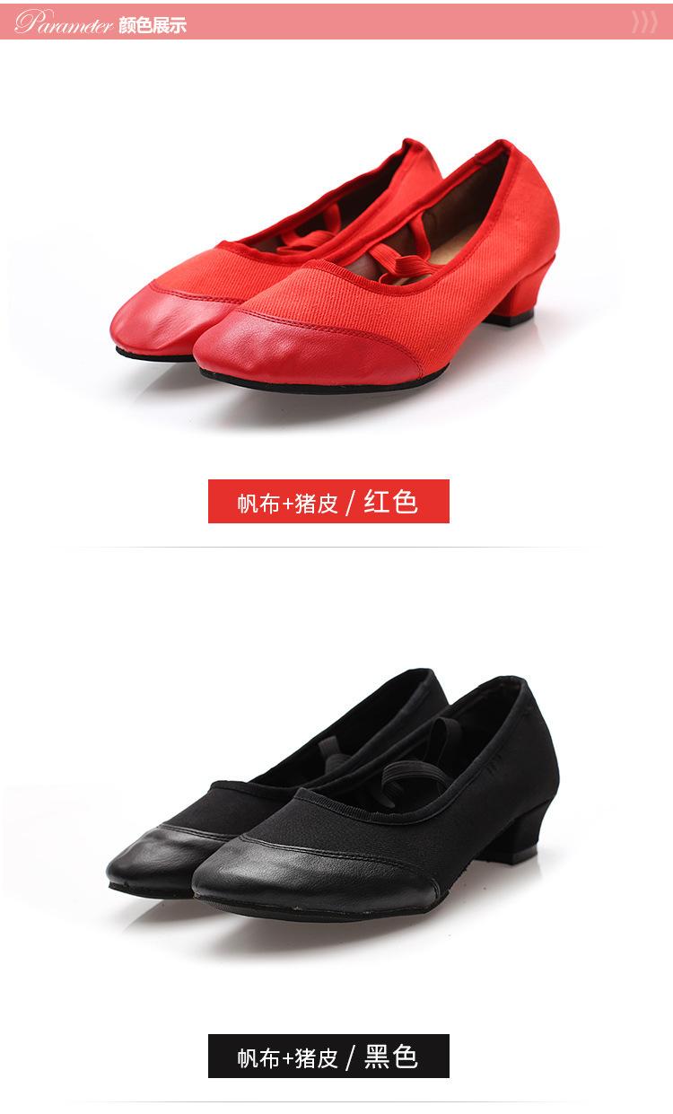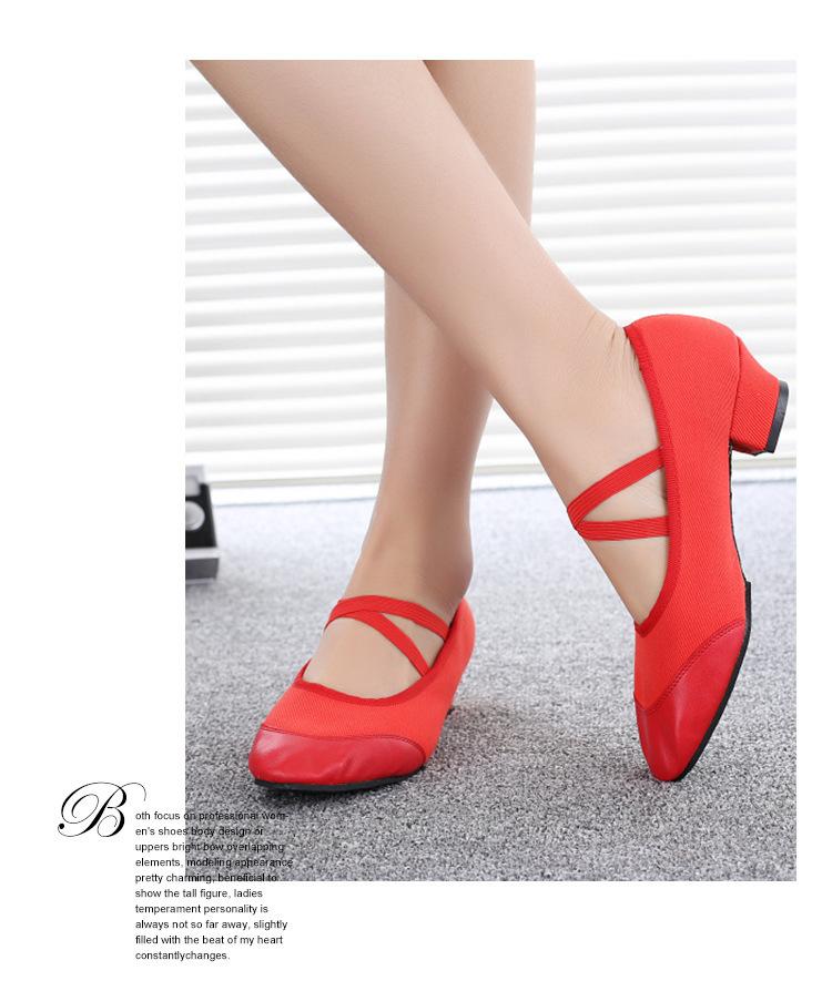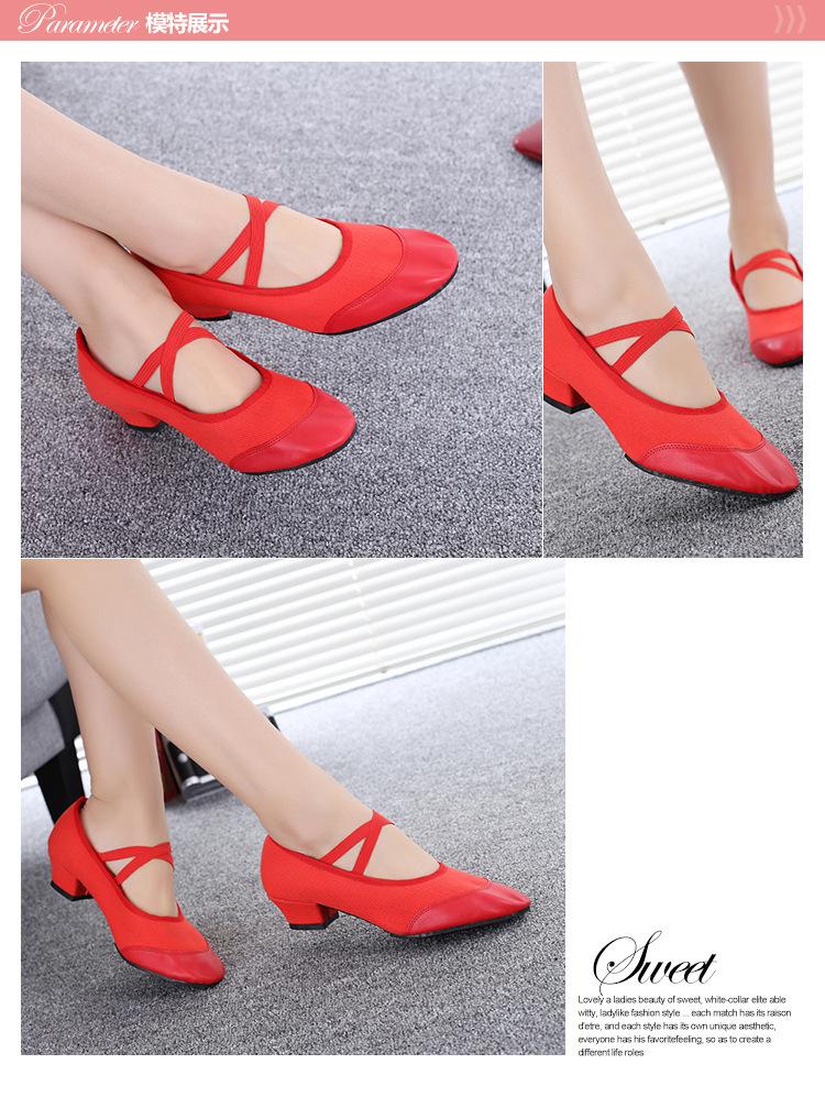 Sapatos de dança vermelhos para adultos, sapatos femininos de dança com raiz quadrada e sola macia de lona para verão 2025, sapatos latinos para mulheres