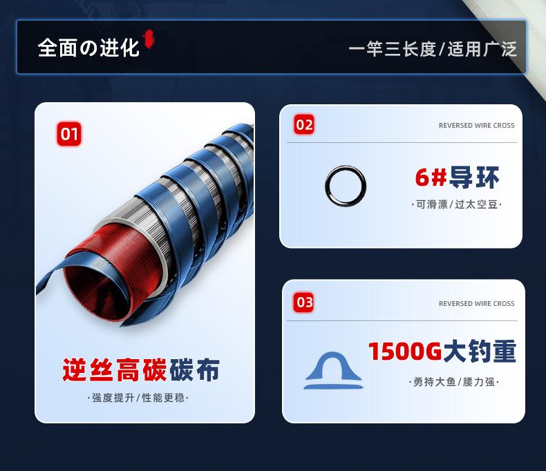 Nova Vara de Lançamento Frontal, Ultraleve e Ultra-Rígida Vara de Pesca de 28 Seções com Design de Três Posições e Sem Corte de Linha