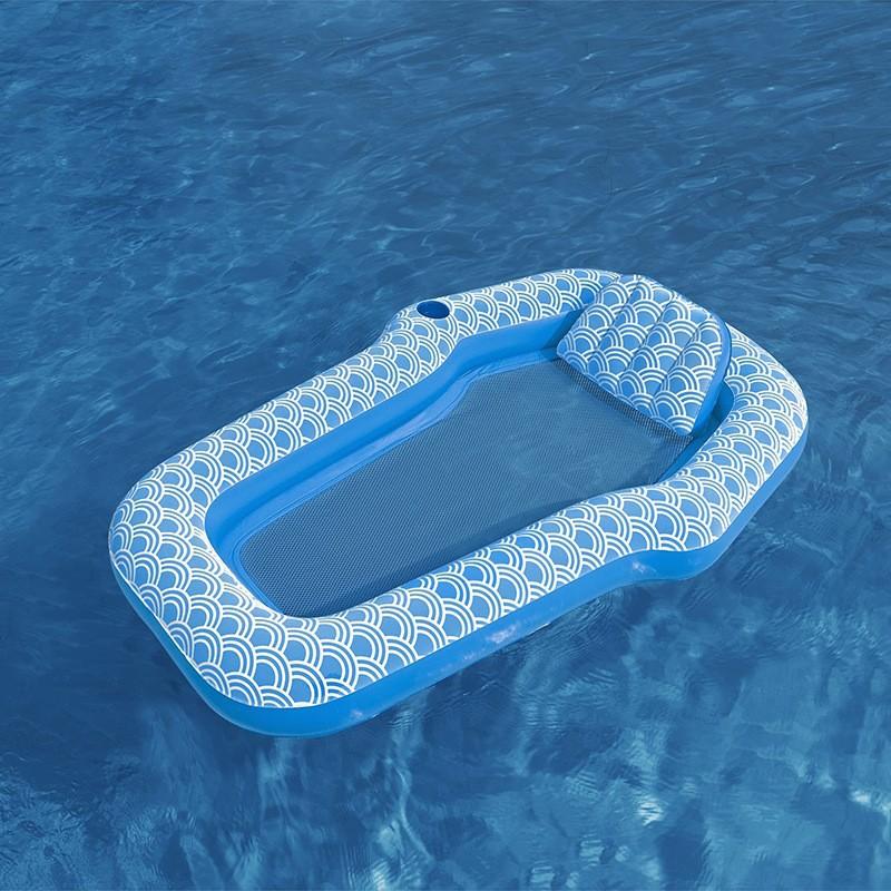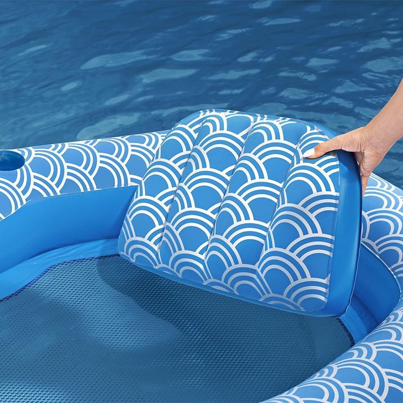 Fornecimento de fábrica de malha inflável flutuante guarda-sol em forma de U poltrona reclinável LED solar luminosa cama flutuante malha bordo anel de natação