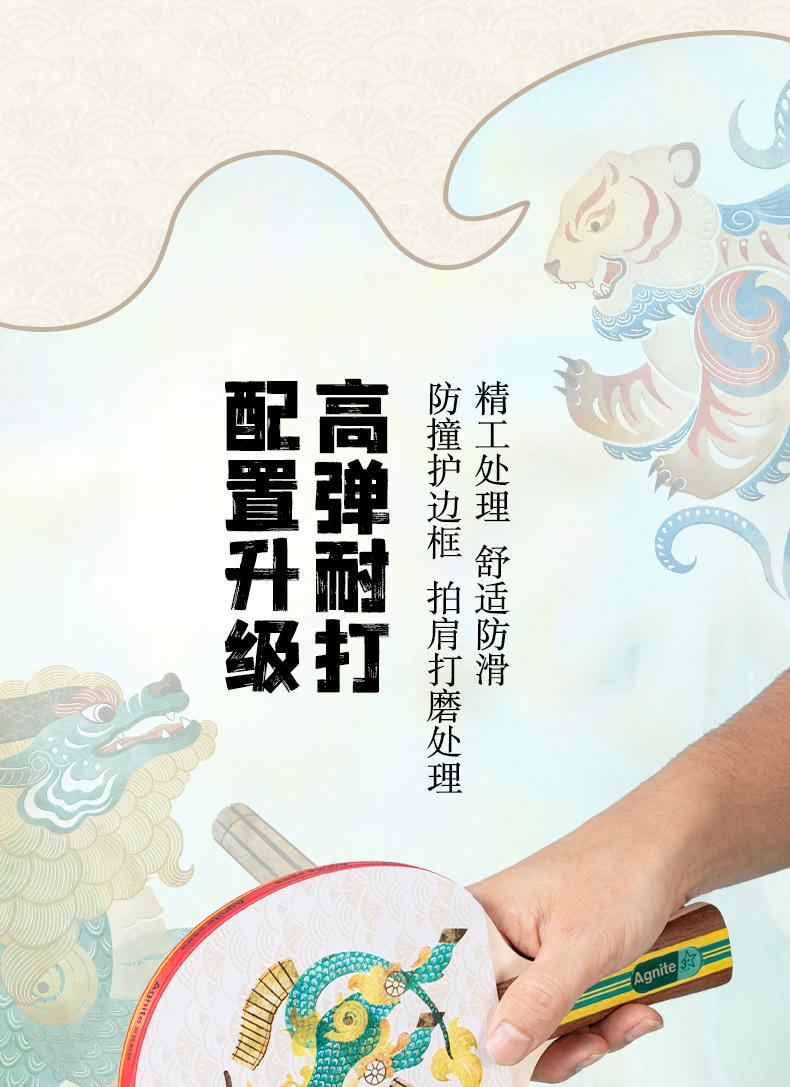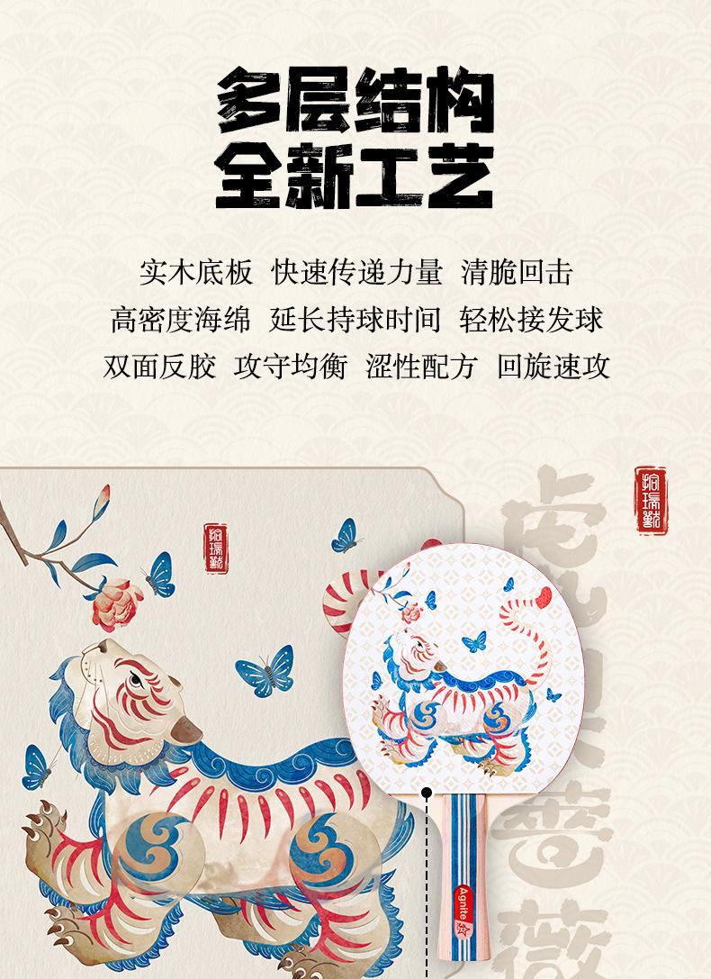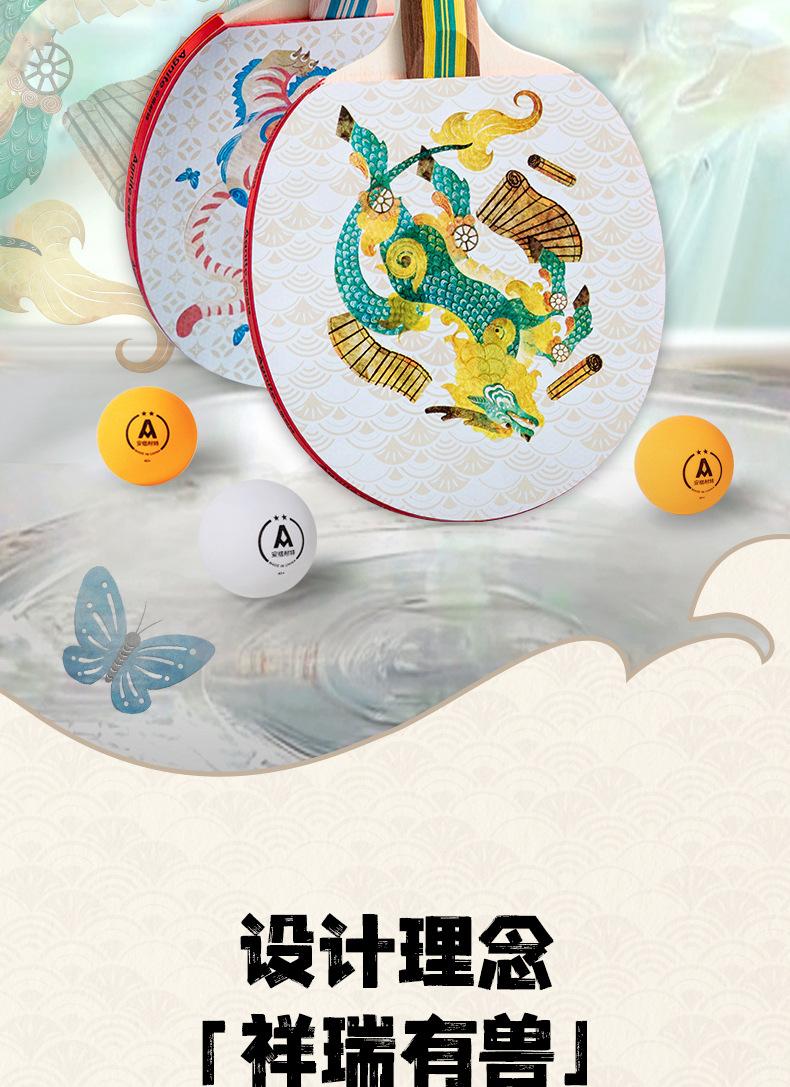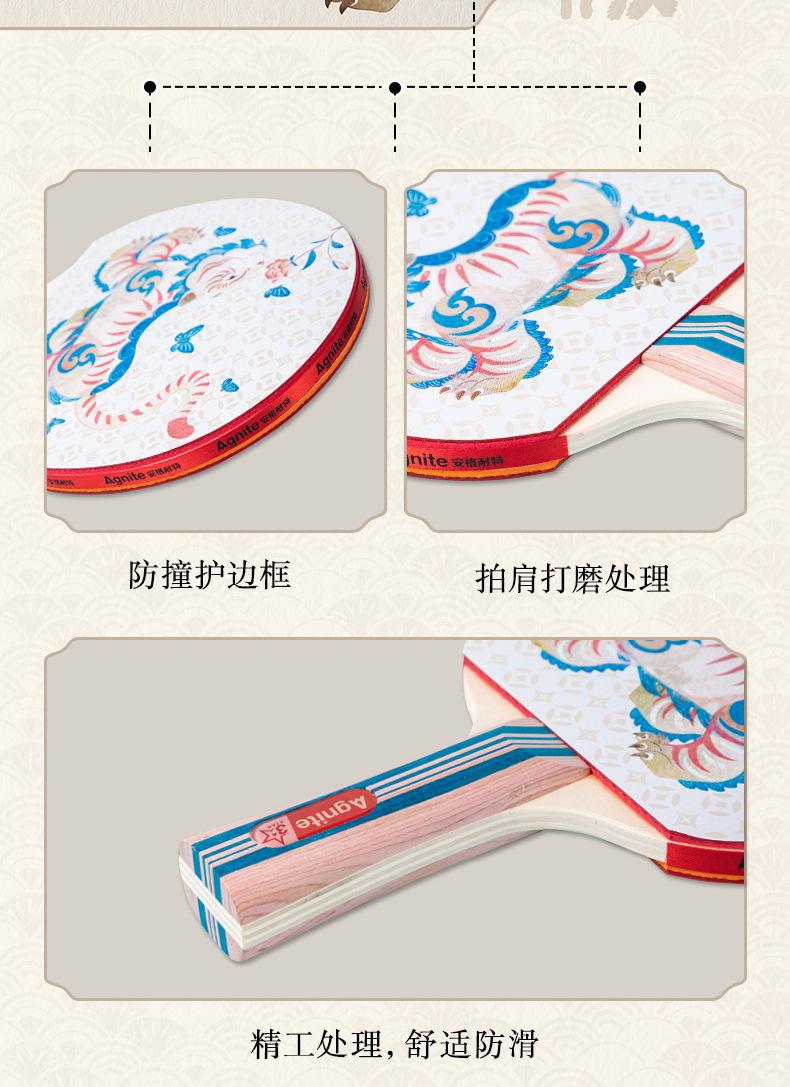Angenet fh220 chinese style kirin white tiger three-star table tennis racket long handle horizontal racket (matching racket)
