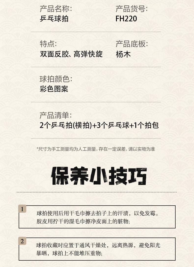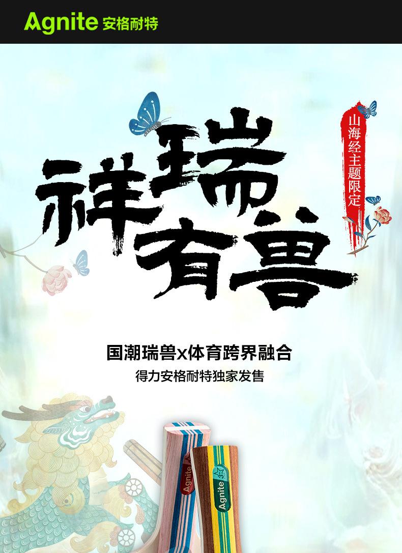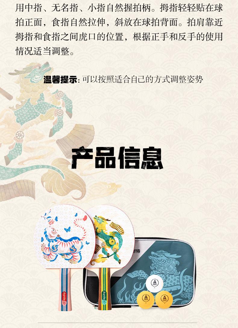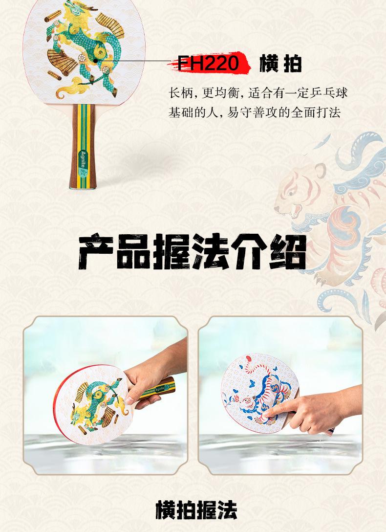 Angenet fh220 chinese style kirin white tiger three-star table tennis racket long handle horizontal racket (matching racket)