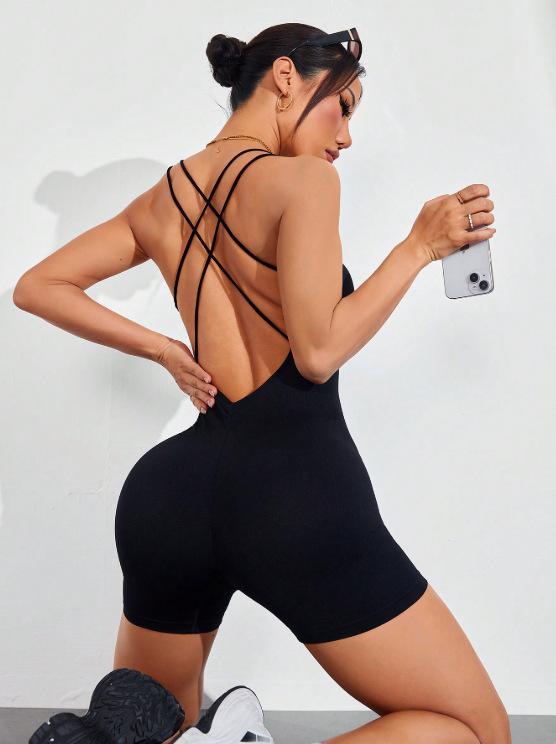 Estilo Europeu Novo Verão Camisole Esportiva Sem Costura Justa Sem Costas Secagem Rápida Shorts de Pilates Roupa de Yoga Macacão