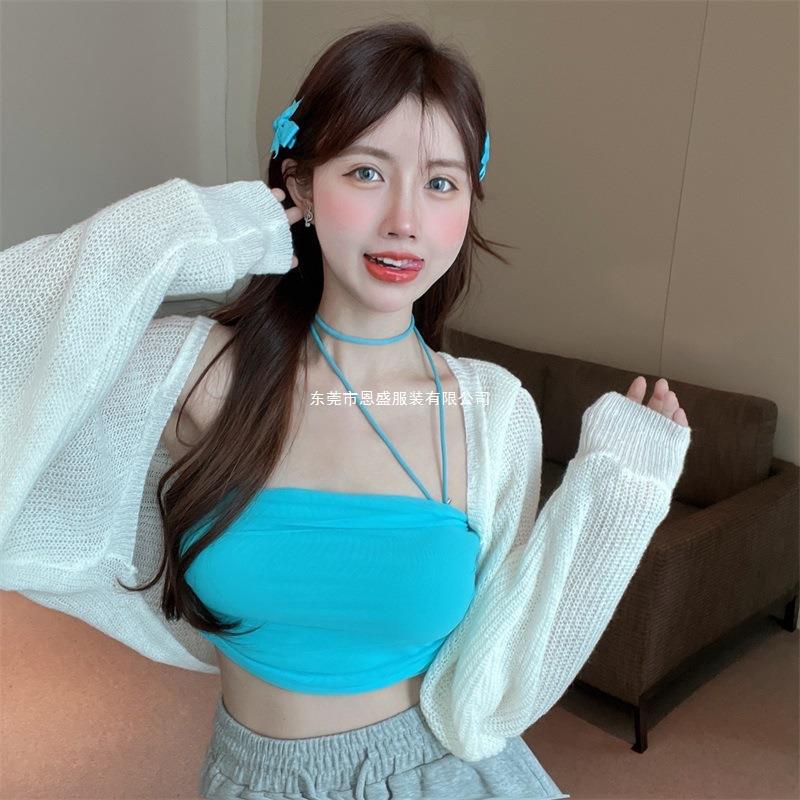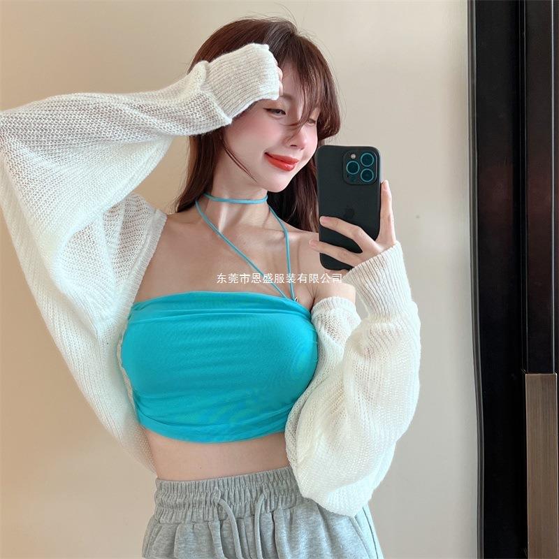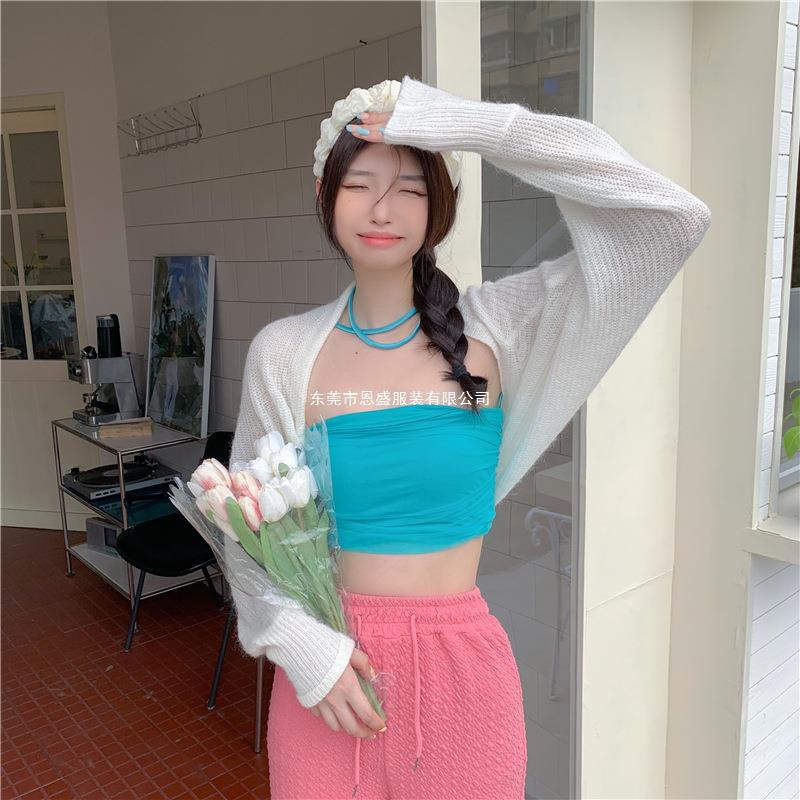 Compre Cardigã Tricotado com Proteção Solar para Mulheres, Top Xale de Manga Comprida para Primavera e Verão, Roupa de Proteção Solar, Acrílico Verde Tamanho Único, Outros no atacado no Joom.pro