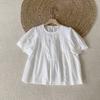 Camisa Elegante de Renda Transfronteiriça 2025 Verão Nova Estilo Coreano Versátil Gola Redonda Manga Lanterna Manga Curta Camisa de Renda Top Feminino