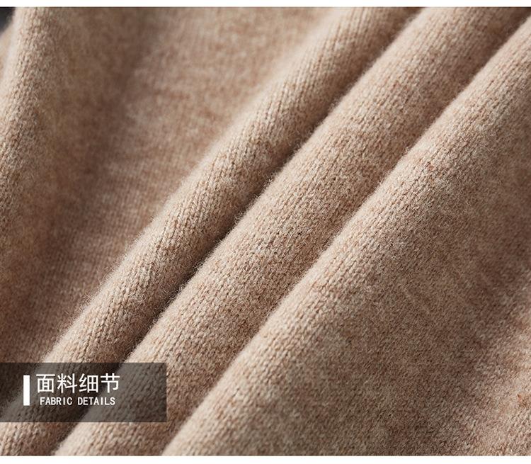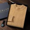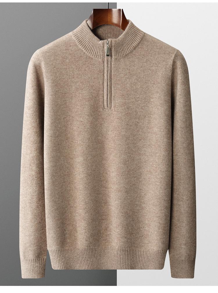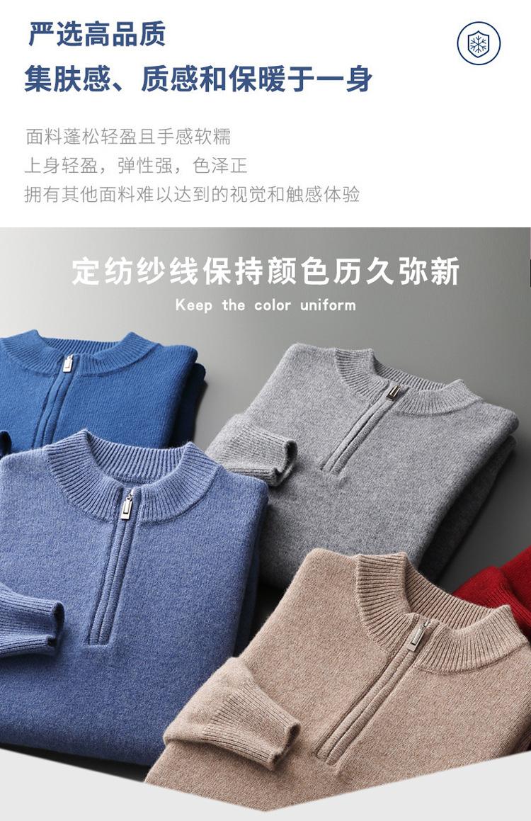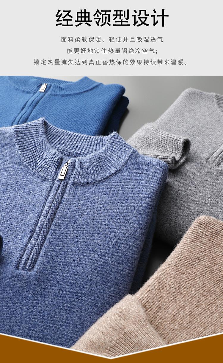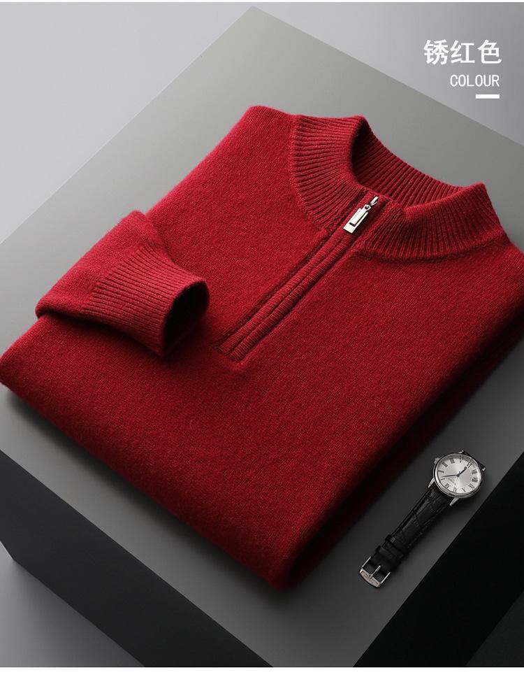 Suéter masculino 100% lã, meia gola alta, zíper, base grossa, outono e inverno, casual, negócios, cor sólida, suéter de caxemira