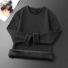 Camiseta de gola redonda e manga comprida, masculina, cor sólida, roupa íntima, roupa de outono, forro de lã, camisa de base quente espessada para outono e inverno, camisa de outono