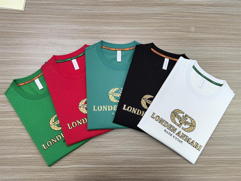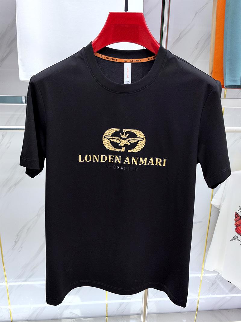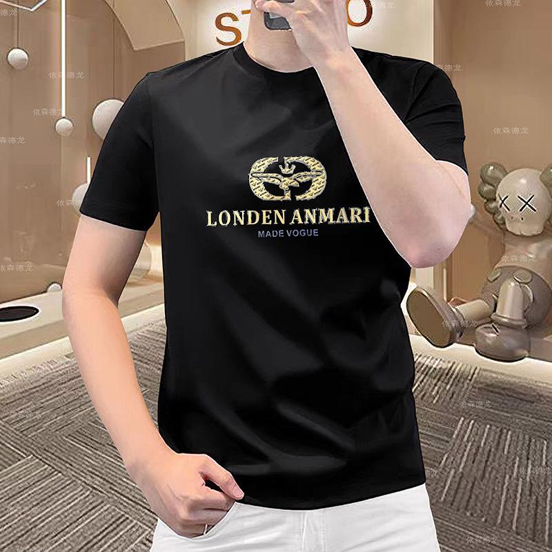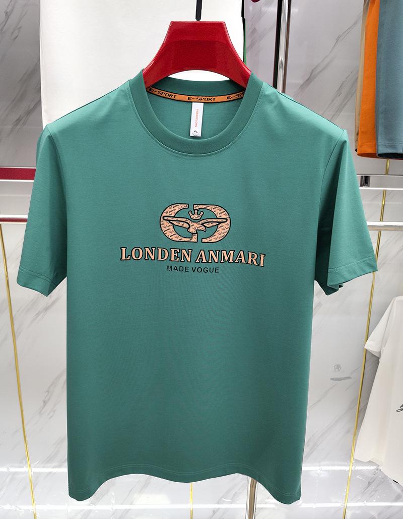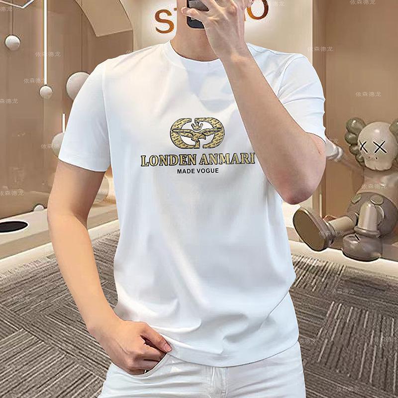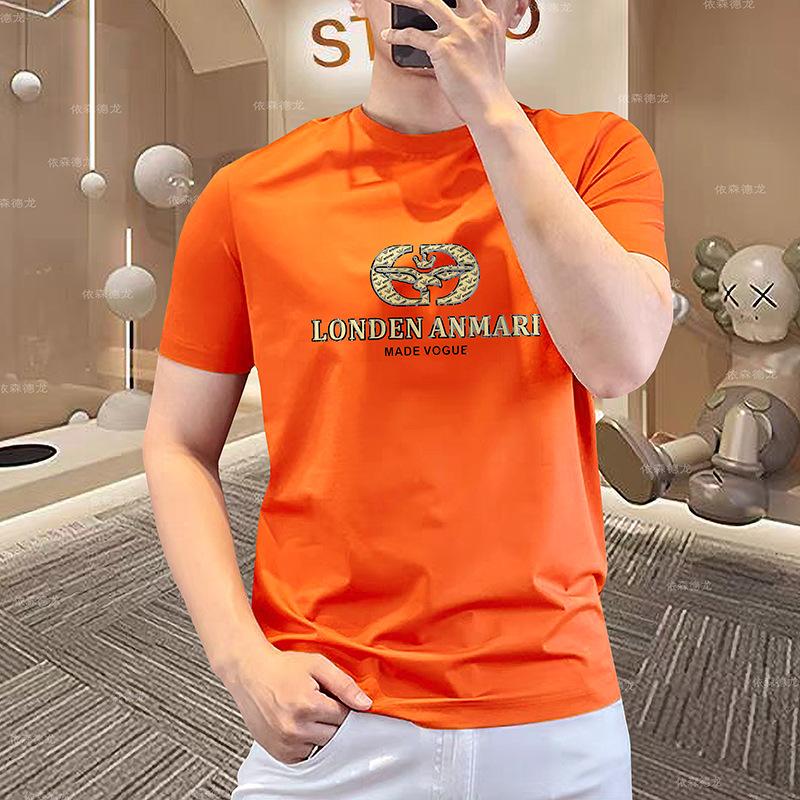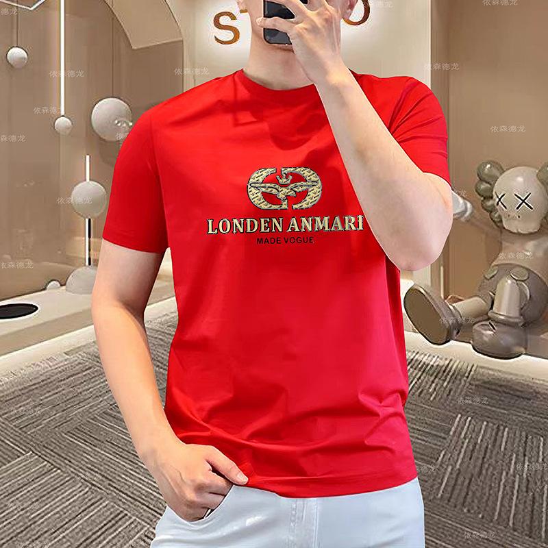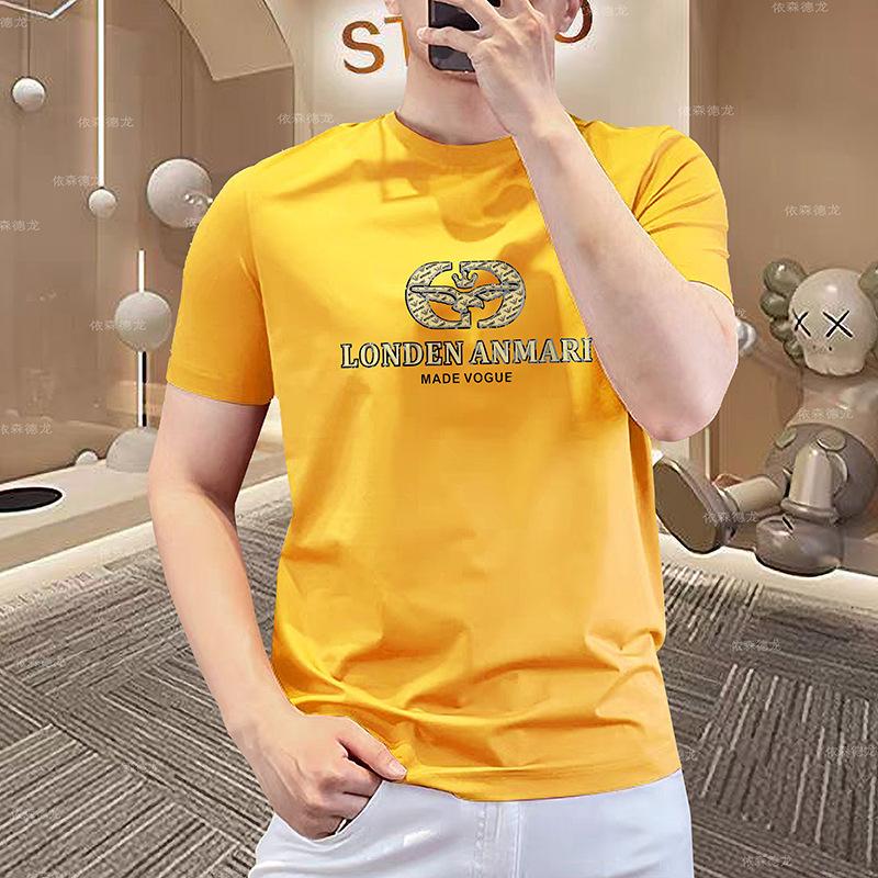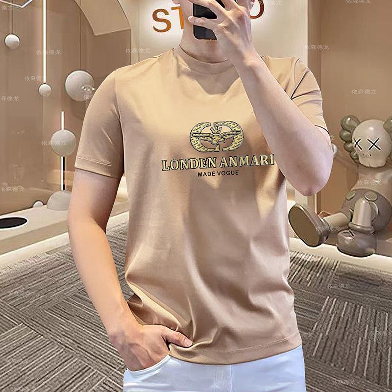 Camiseta masculina de manga curta de algodão mercerizado 2025, gola redonda, leve, luxuosa, nova moda slim, tendência