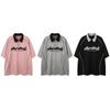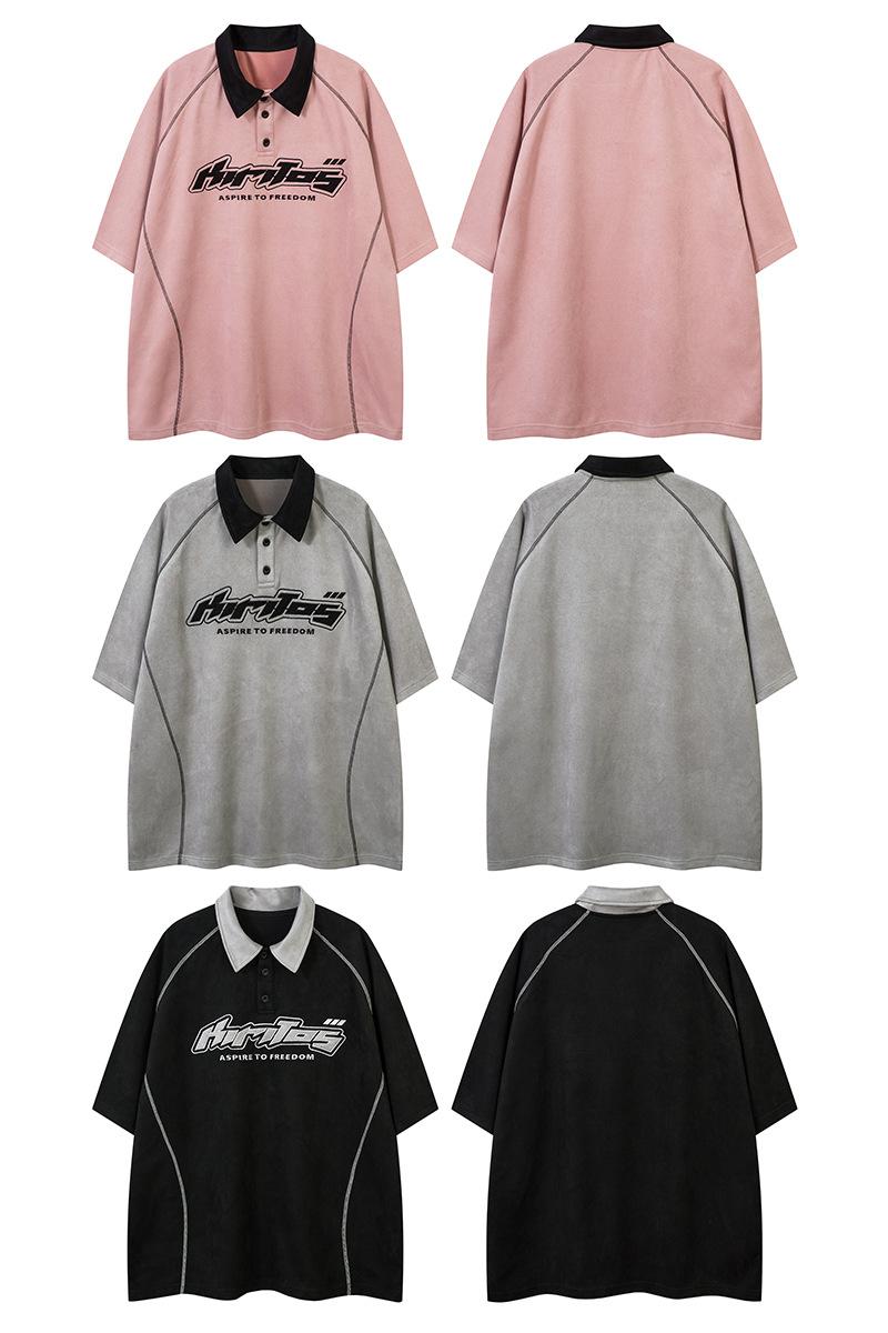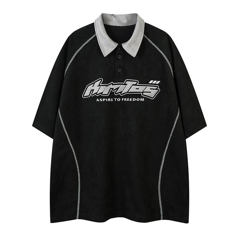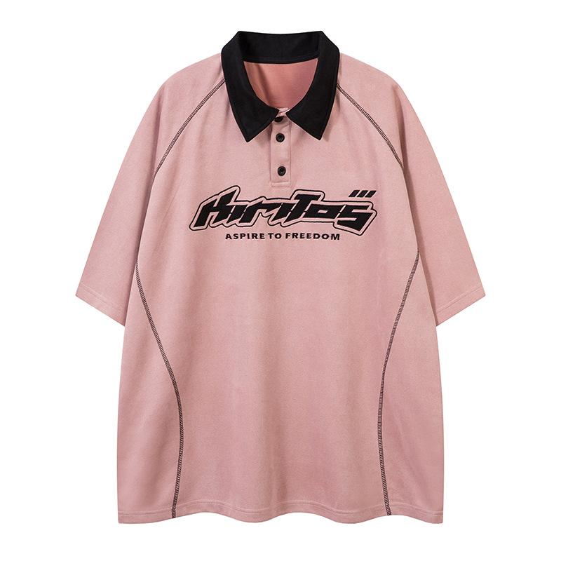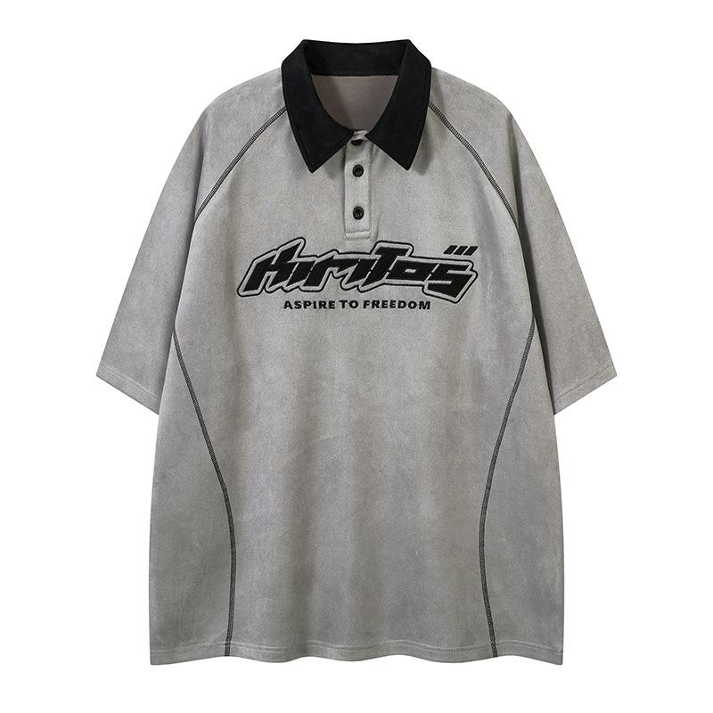 Camiseta de manga curta com letras bordadas e contraste de cores da marca da moda, verão 2025, nova camiseta casual solta para casal