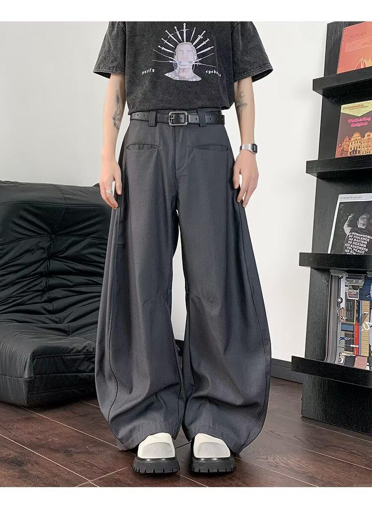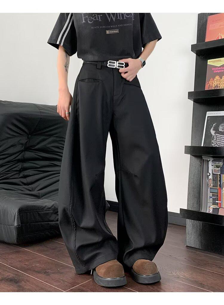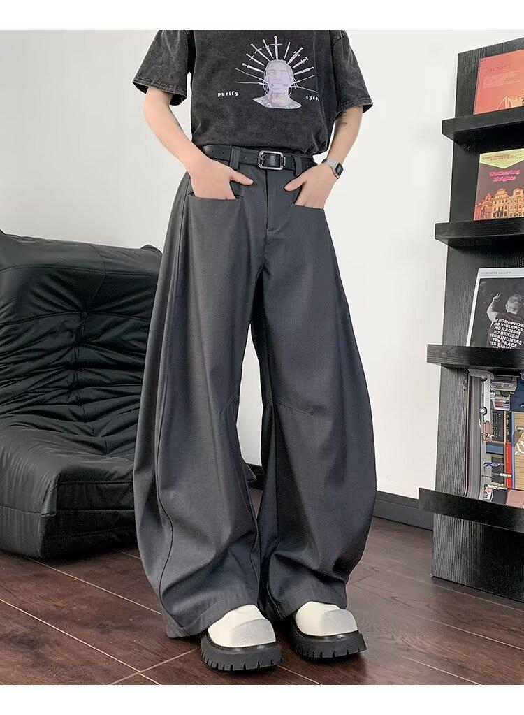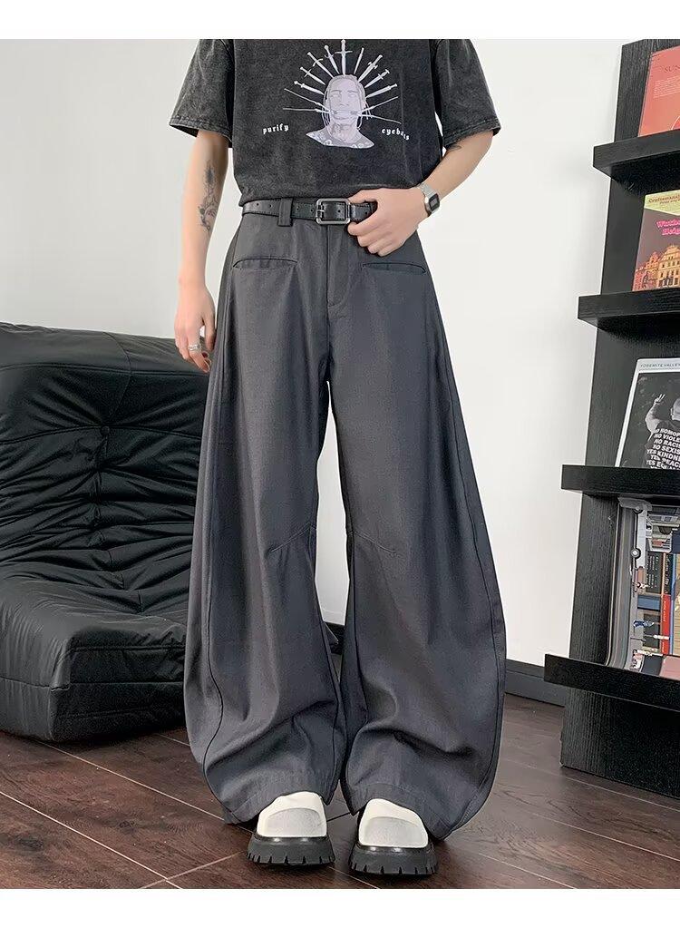 Compre Calças de Alfaiataria Pequenas Vintage Desconstruídas Masculinas Primavera Retas Pernas Largas Senso de Alta Qualidade Calças Casuais Soltas no atacado no Joom.pro