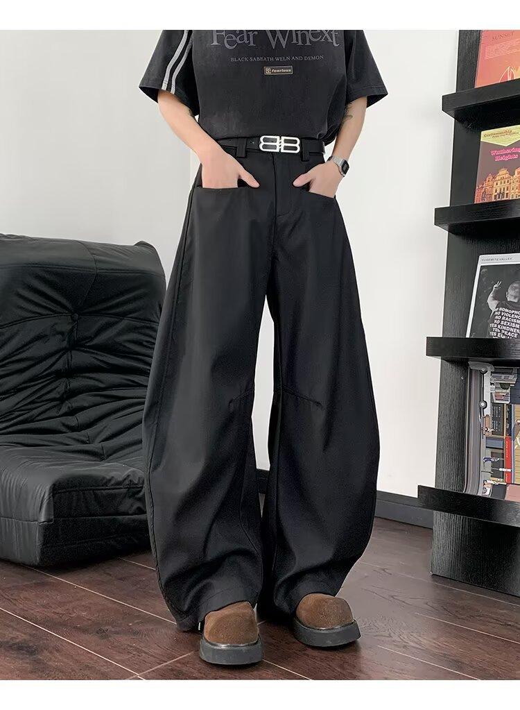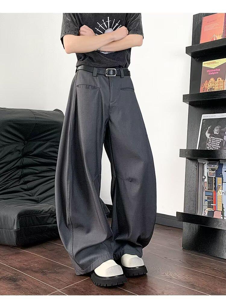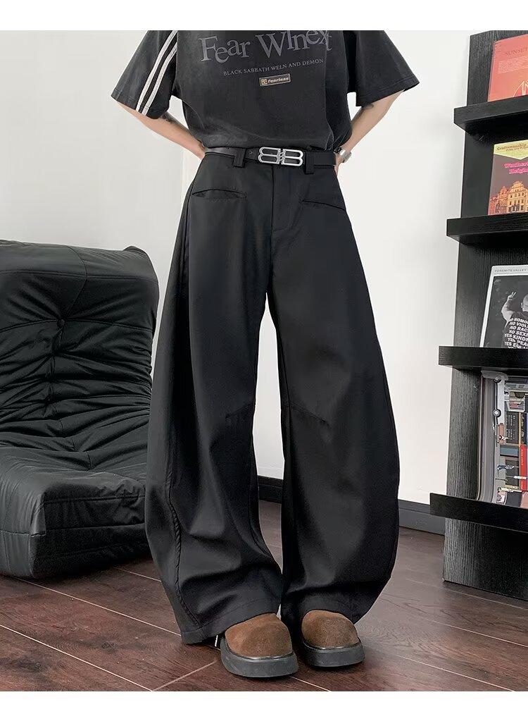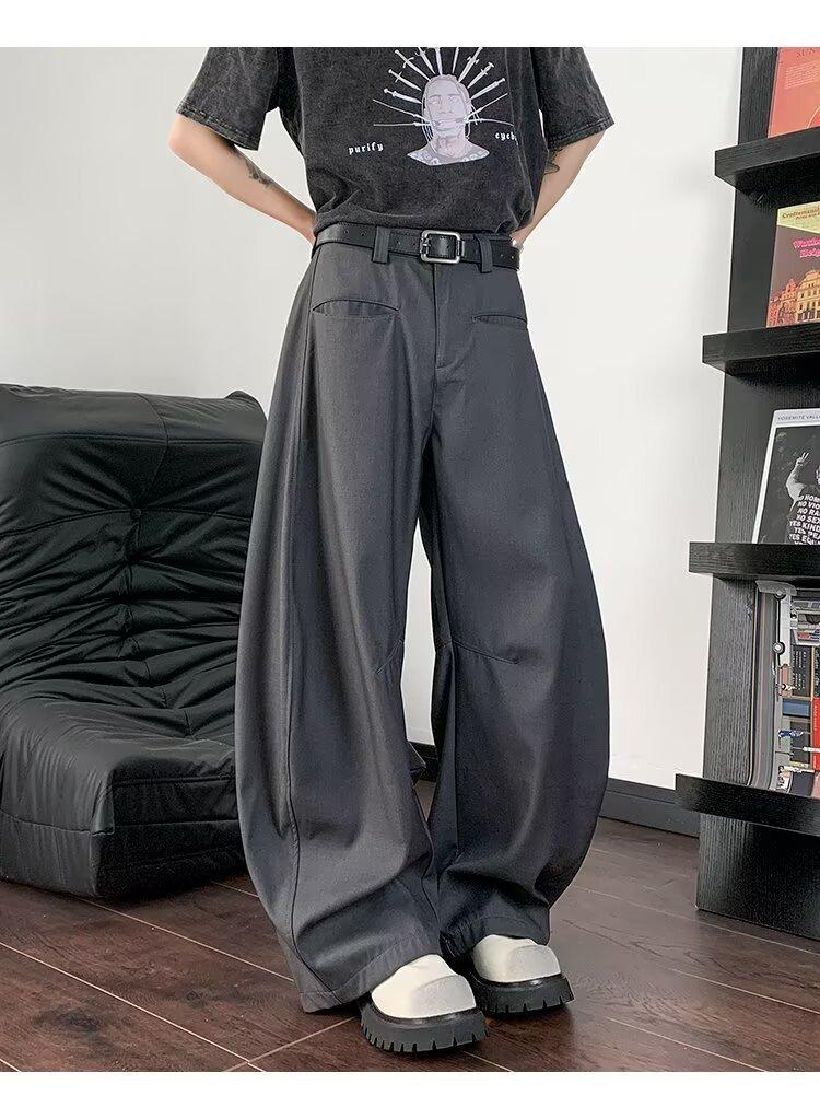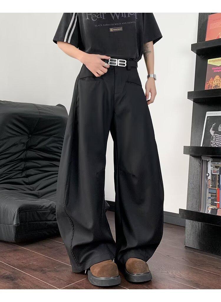 Compre Calças de Alfaiataria Pequenas Vintage Desconstruídas Masculinas Primavera Retas Pernas Largas Senso de Alta Qualidade Calças Casuais Soltas no atacado no Joom.pro
