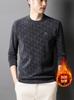 Suéter masculino de lã grossa austríaca com forro de lã, gola redonda, moda inverno, jacquard, quente, manga comprida, camiseta básica, roupa masculina