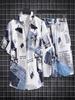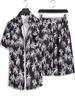 Camisa masculina de manga curta estampada, folgada, moderna, bonita, de verão, jaqueta fina, seda gelada, camisa masculina