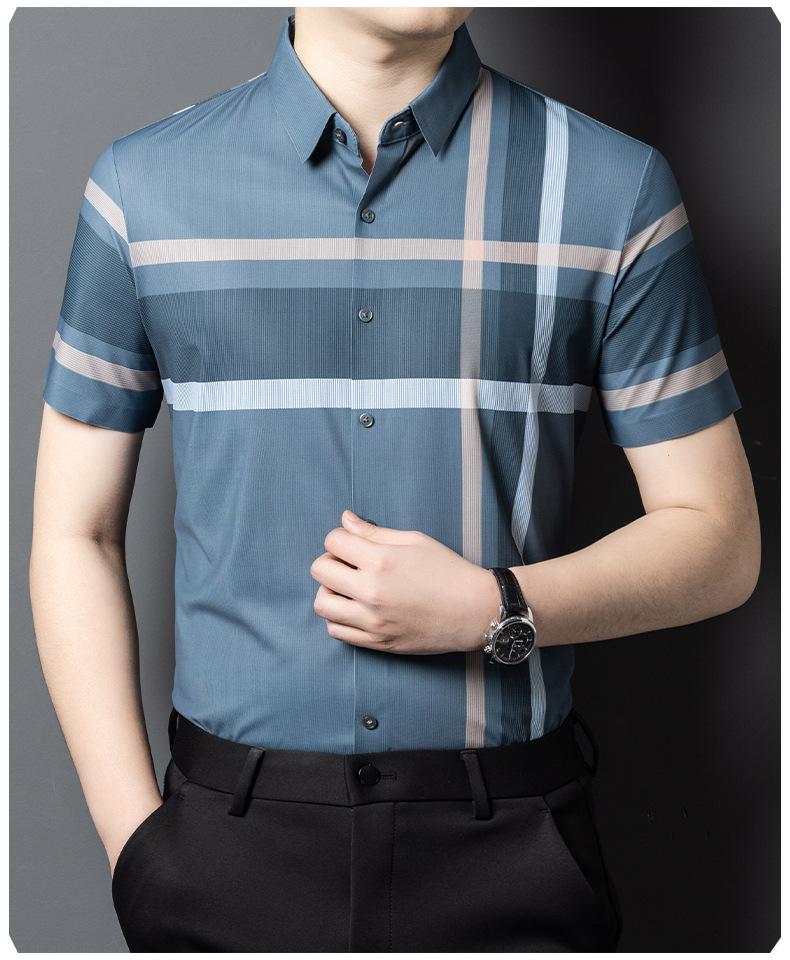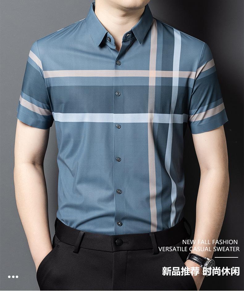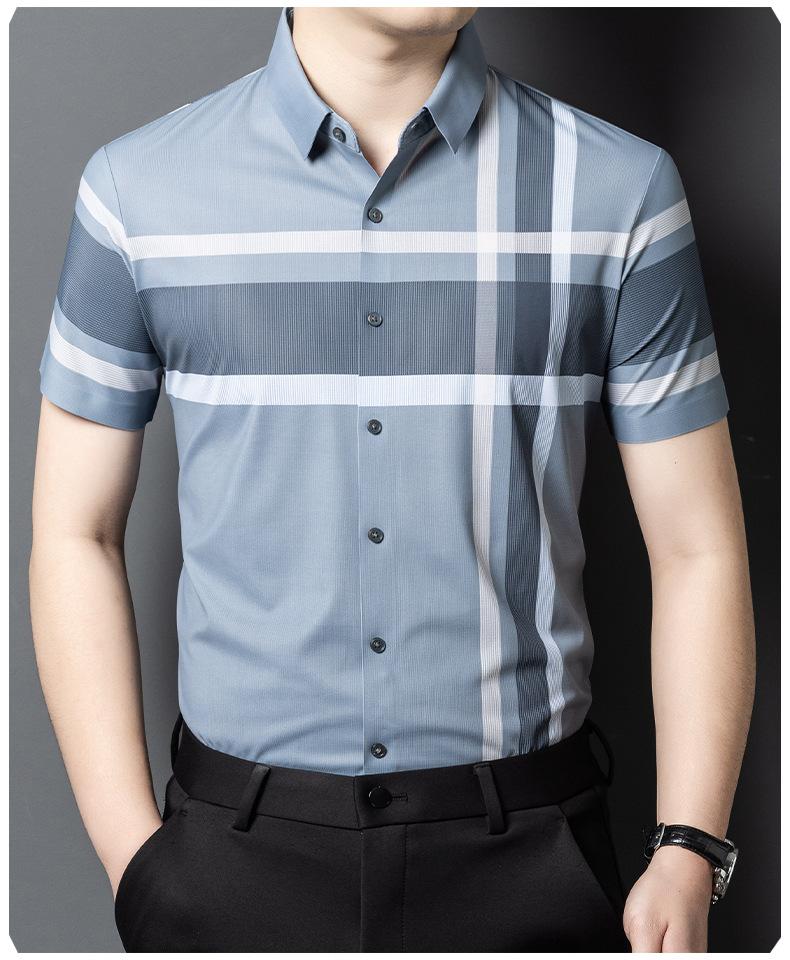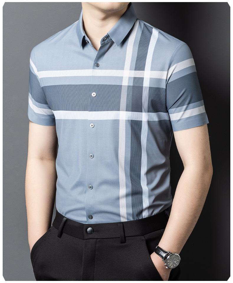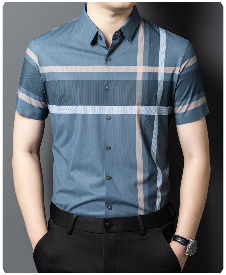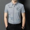 Camisa masculina de manga curta com estampa listrada da moda, nova camisa fina casual de negócios com abotoamento simples da moda para o verão de 25
