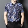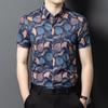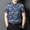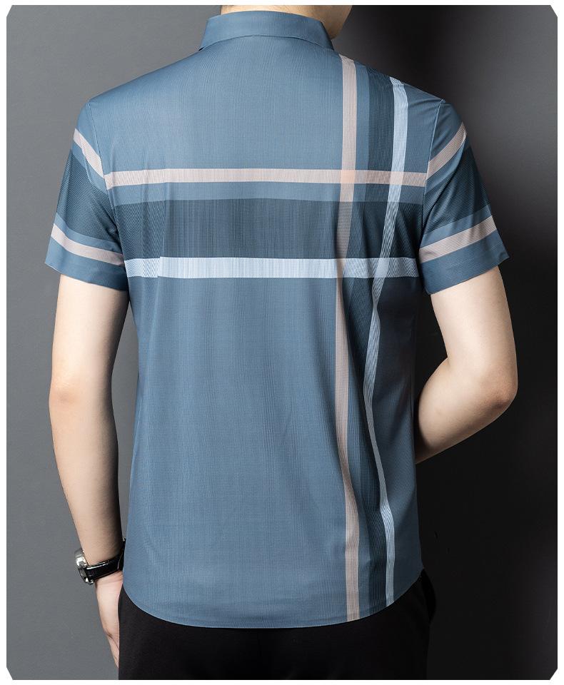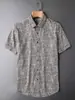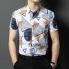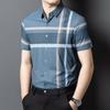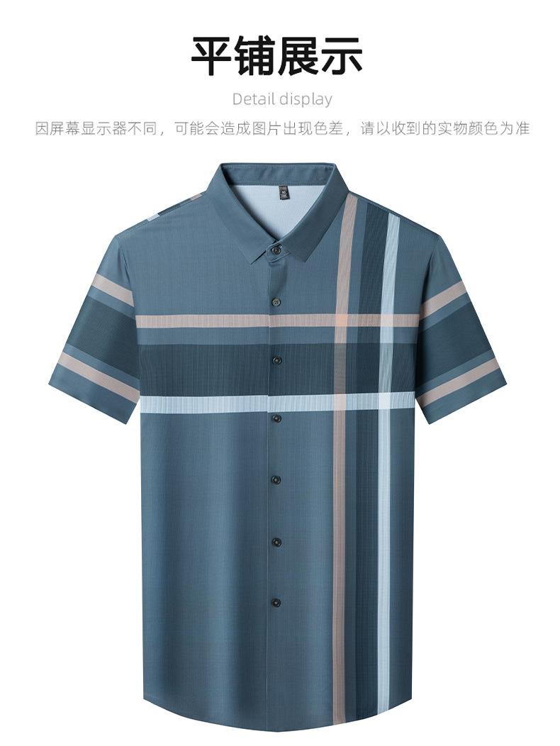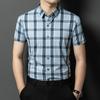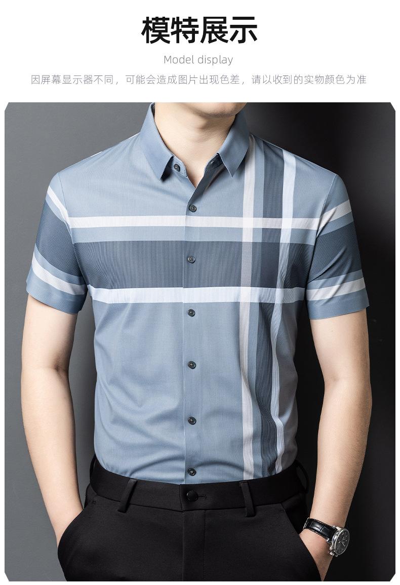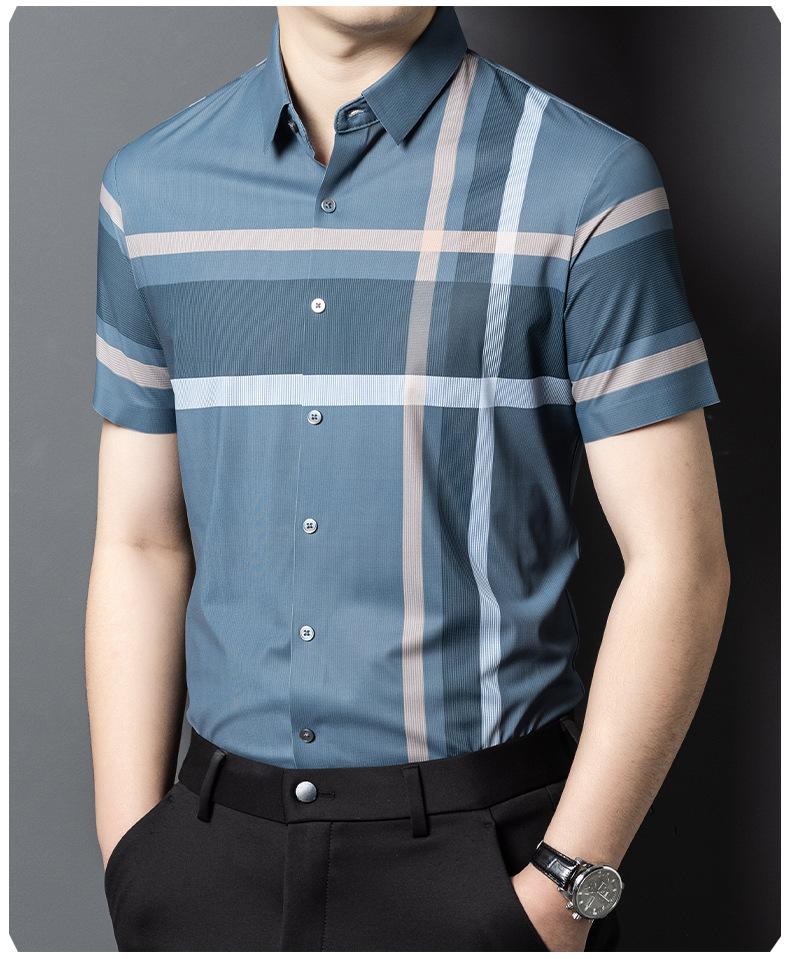 Camisa masculina de manga curta com estampa listrada da moda, nova camisa fina casual de negócios com abotoamento simples da moda para o verão de 25