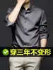 Camisa de Manga Comprida Stretch Seda Gelo Masculina Outono Business Casual Versátil Gola Anti-rugas Não Precisa Passar Não Marca Roupa Masculina