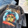 Roupas Casa Masculina 2025 Verão Novo Marca de Moda Retrô Americana Design Plissado Casual Solto Camiseta de Manga Curta