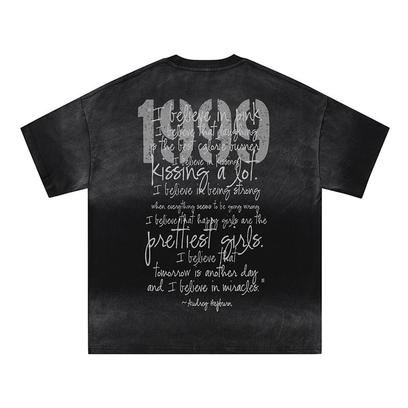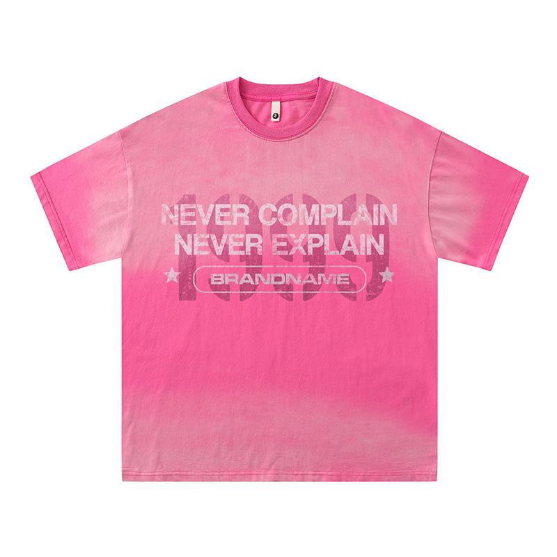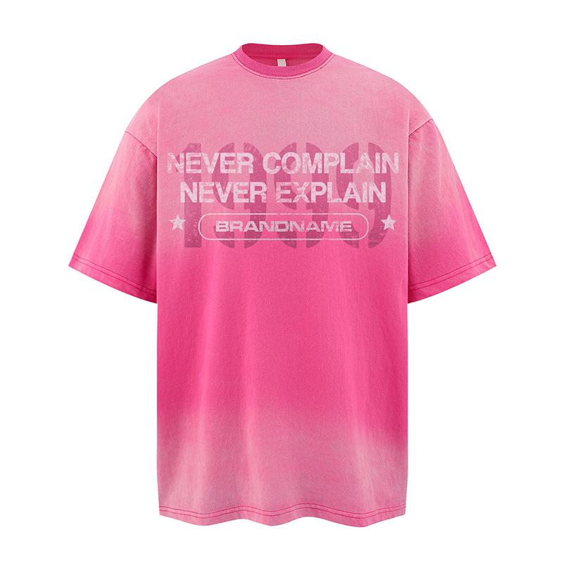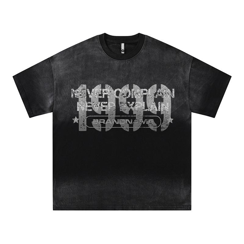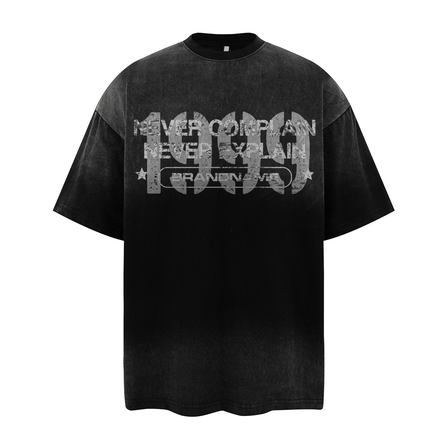 Camiseta masculina estilo americano retrô com estampa de letras gradiente pesada de manga curta, camiseta solta de gola redonda vintage para casal