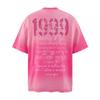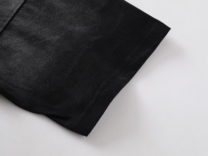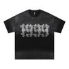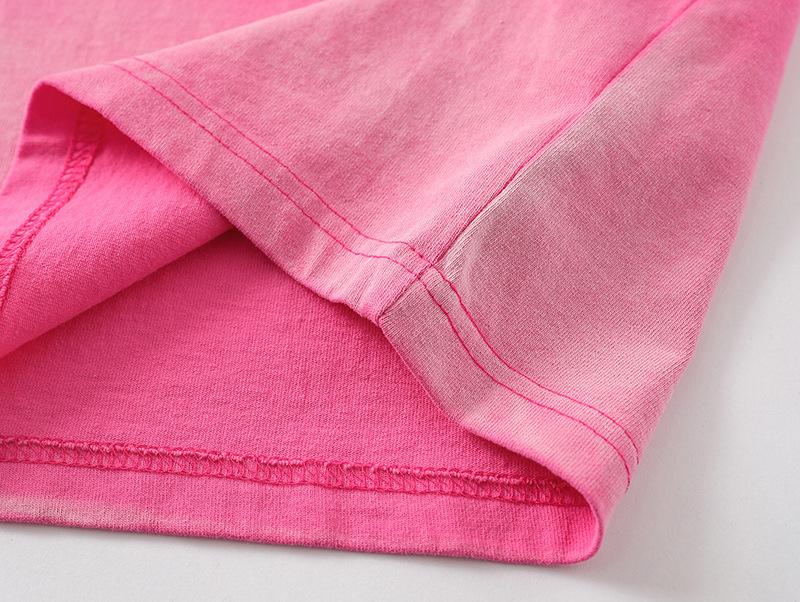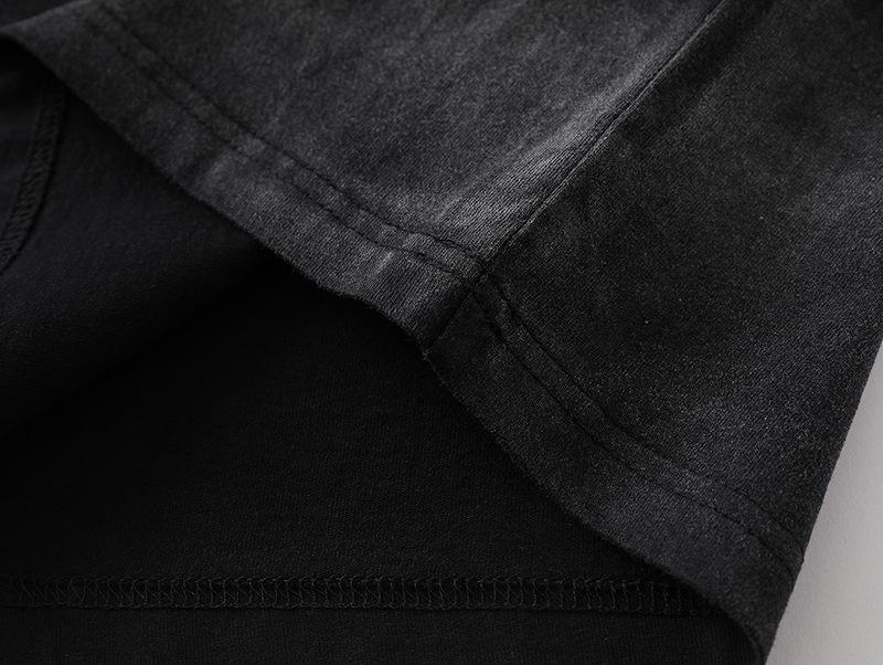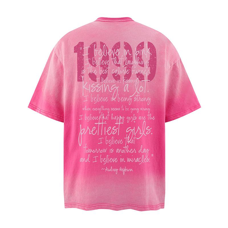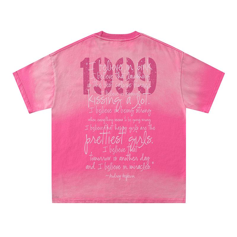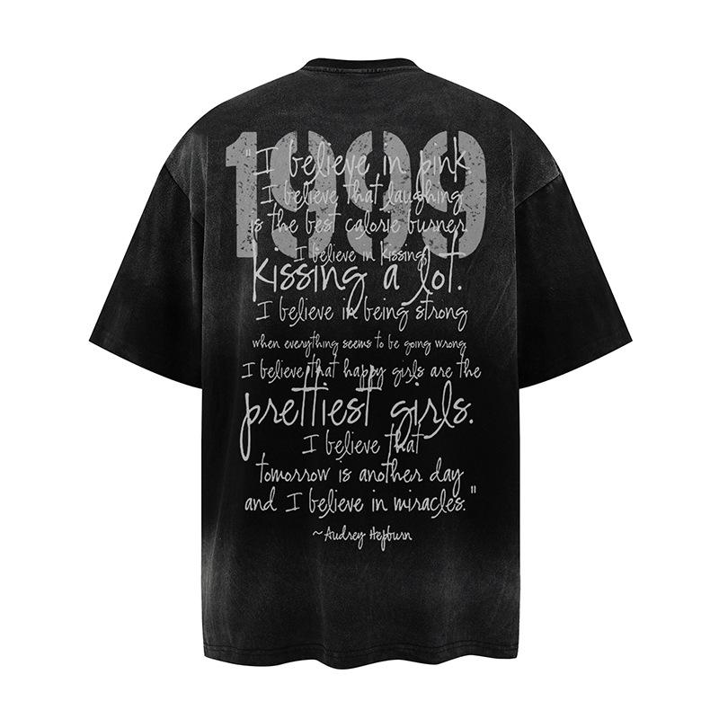 Camiseta masculina estilo americano retrô com estampa de letras gradiente pesada de manga curta, camiseta solta de gola redonda vintage para casal
