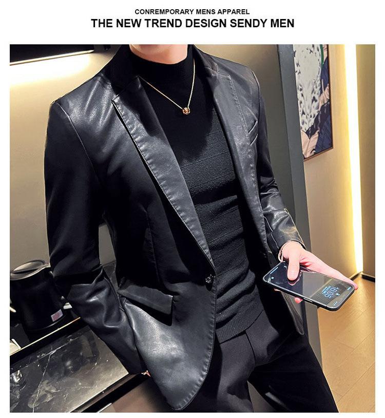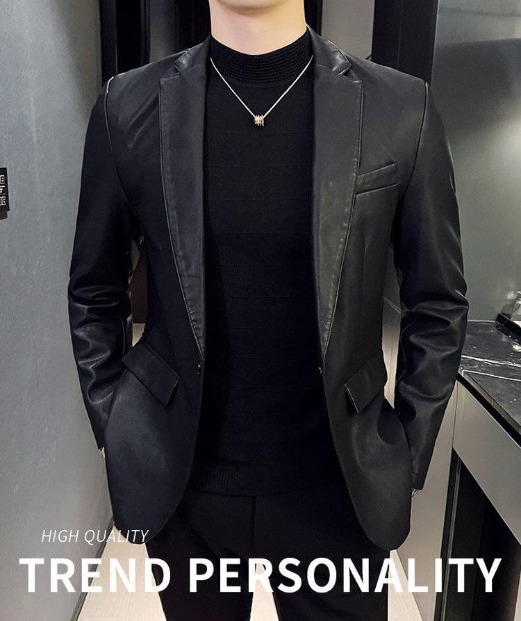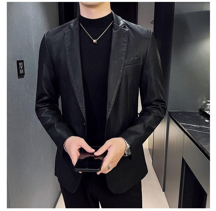 Compre Jaqueta de Couro Masculina 2023 Outono Nova Moda Tendência PU Bonita Top Casual Slim Fit Roupas Masculinas de Primavera e Outono no atacado no Joom.pro
