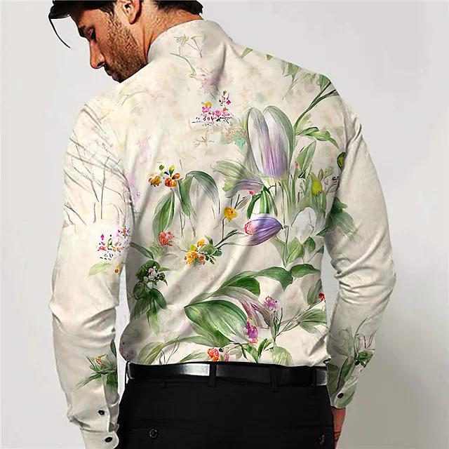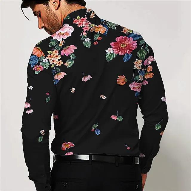 Comércio exterior transfronteiriço 2023 Europa e Estados Unidos camisa estampada floral camisa masculina slim fashion cardigan camisa de manga comprida plus size