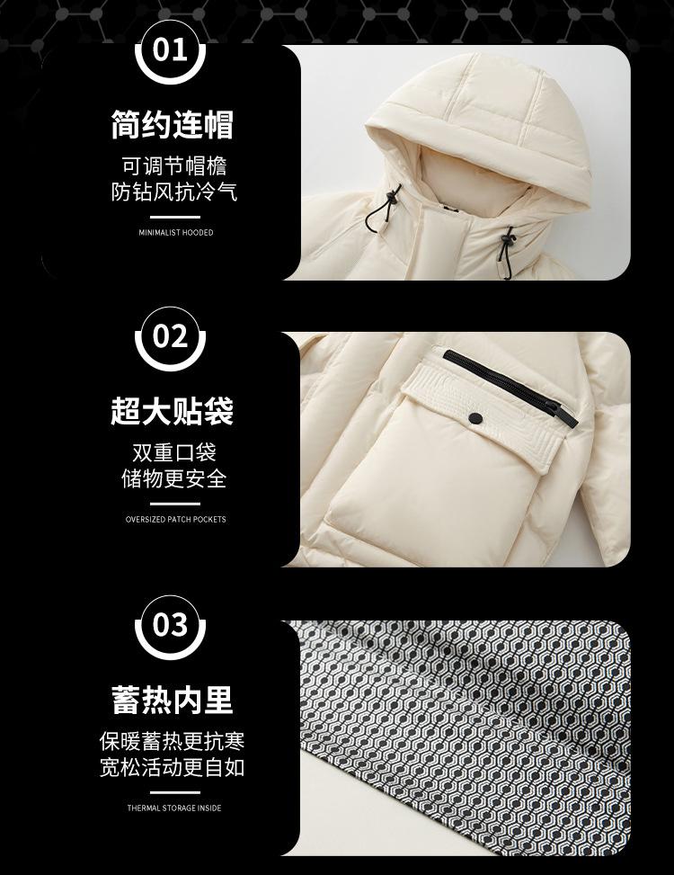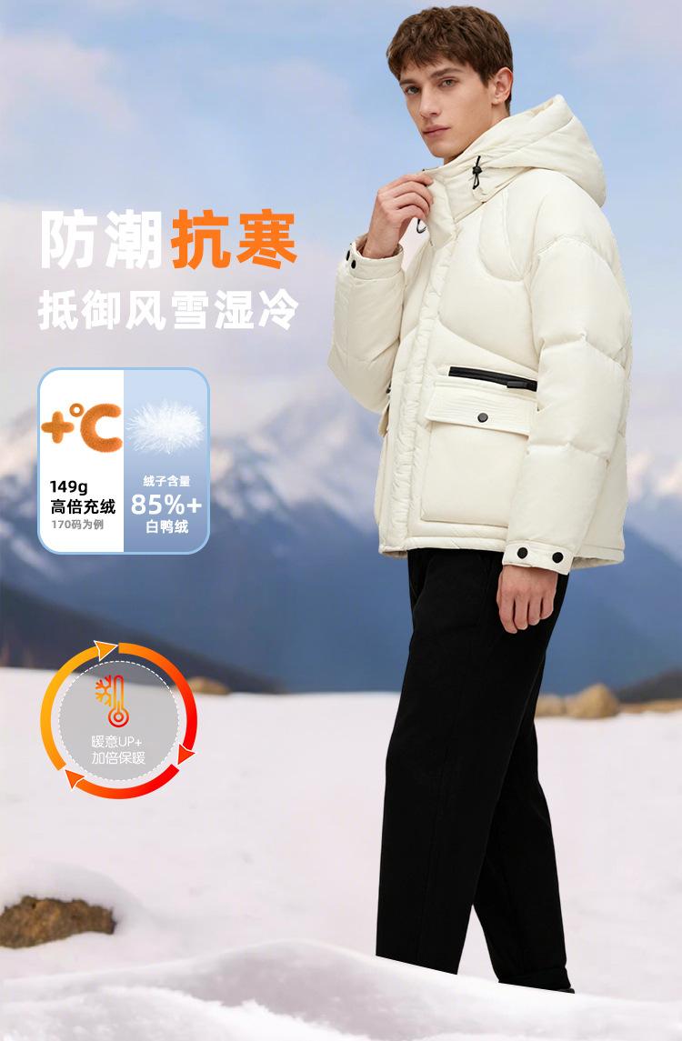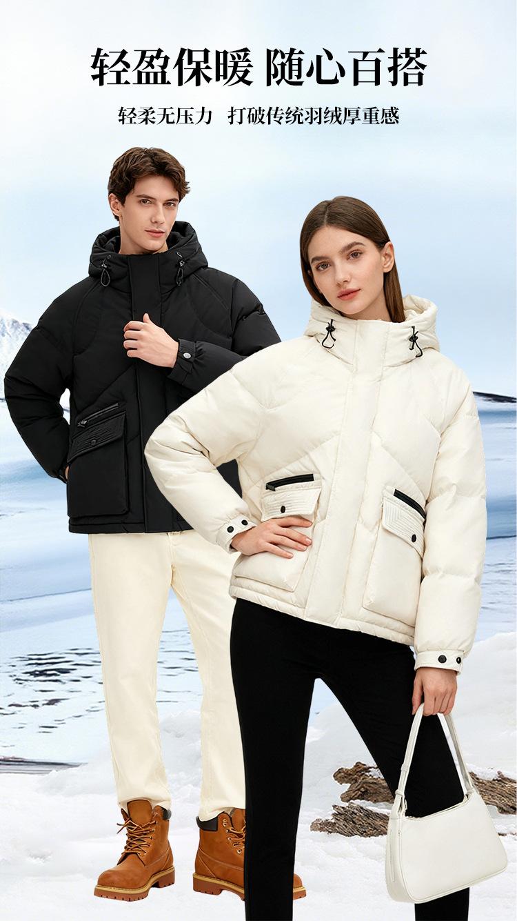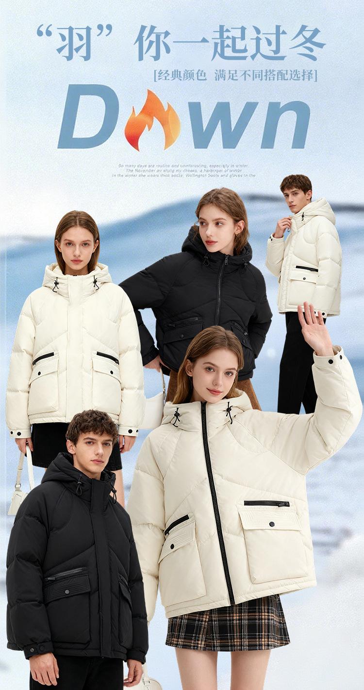 Jaqueta curta masculina de penas de pato branco casual nova jaqueta masculina e feminina com capuz à prova de frio