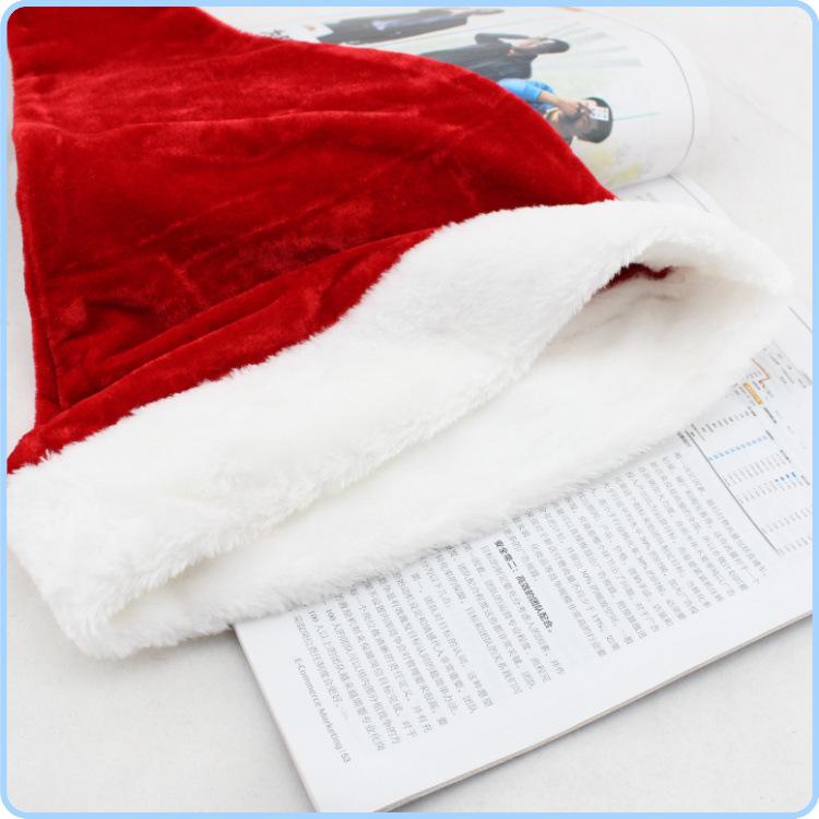 Observação: a parte vermelha do nosso chapéu de Natal é feita de veludo dourado, e a parte branca é feita de flanela.