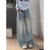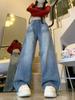 Jeans Retrô de Cintura Alta e Corte Reto Estilo Americano Feminino Primavera e Verão Design High Street Solto Emagrecedor Caimento Calças de Perna Larga