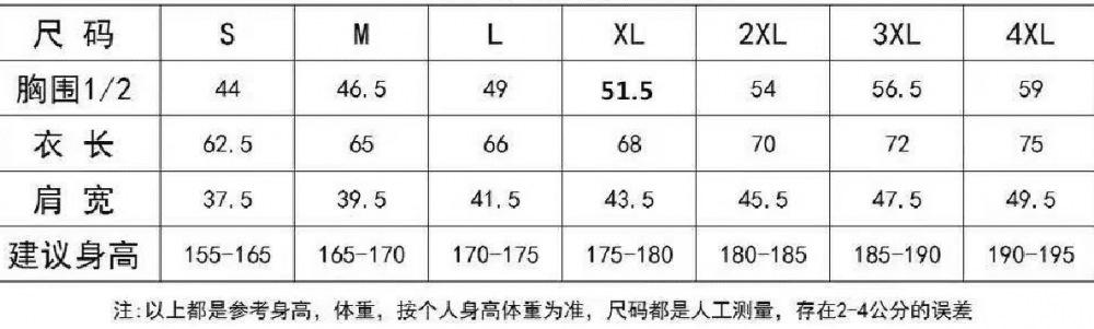 S, M, L, XL, 2XL, 3XL, 4XL