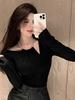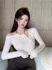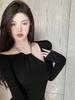 Outono vento puro sexy garota quente pendurado pescoço manga longa camiseta nicho ins moda ombro de fora temperamento magro magro top