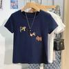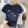 Nova camiseta feminina de manga curta 2025, verão, resistente, bordada, estilo coreano, ombro de estudante, camiseta da moda